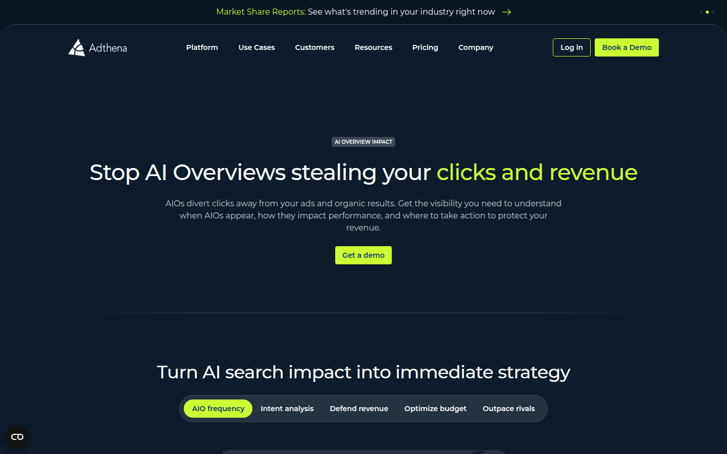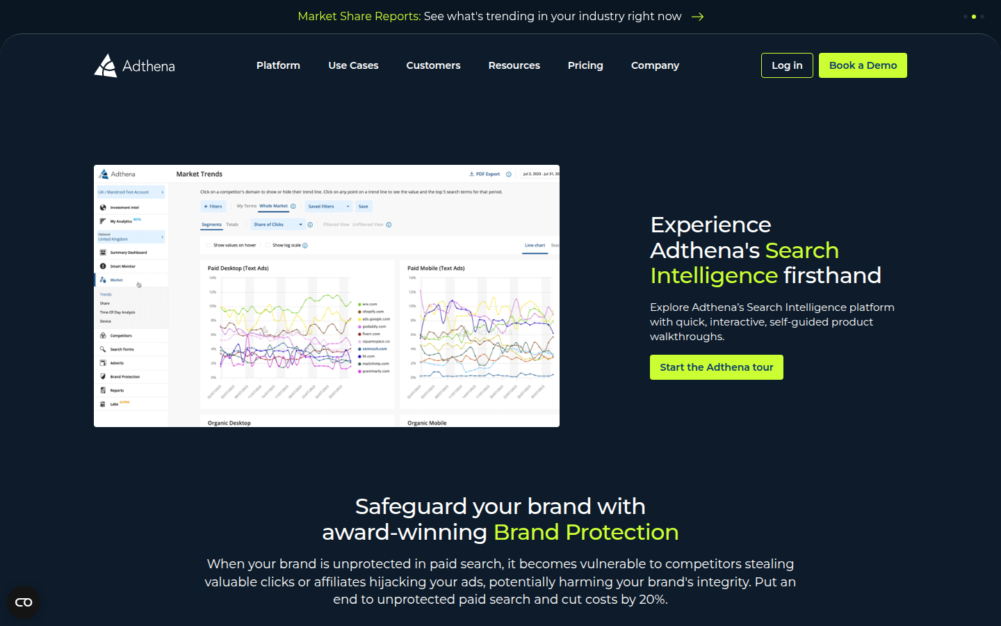 Adthena is a market-leading AI search intelligence platform that helps businesses maximize visibility and performance across AI Overviews, LLMs, and Google Ads. The company leverages thousands of terabytes of search term data and 12 years of modeling expertise to transform millions of data points into actionable insights, enabling organizations to grow revenue and optimize return on ad spend (ROAS).