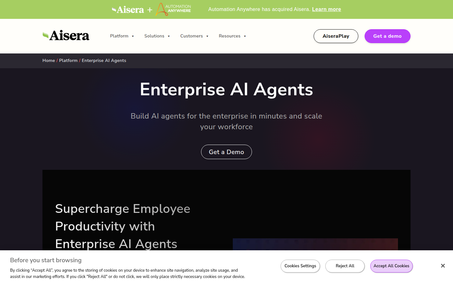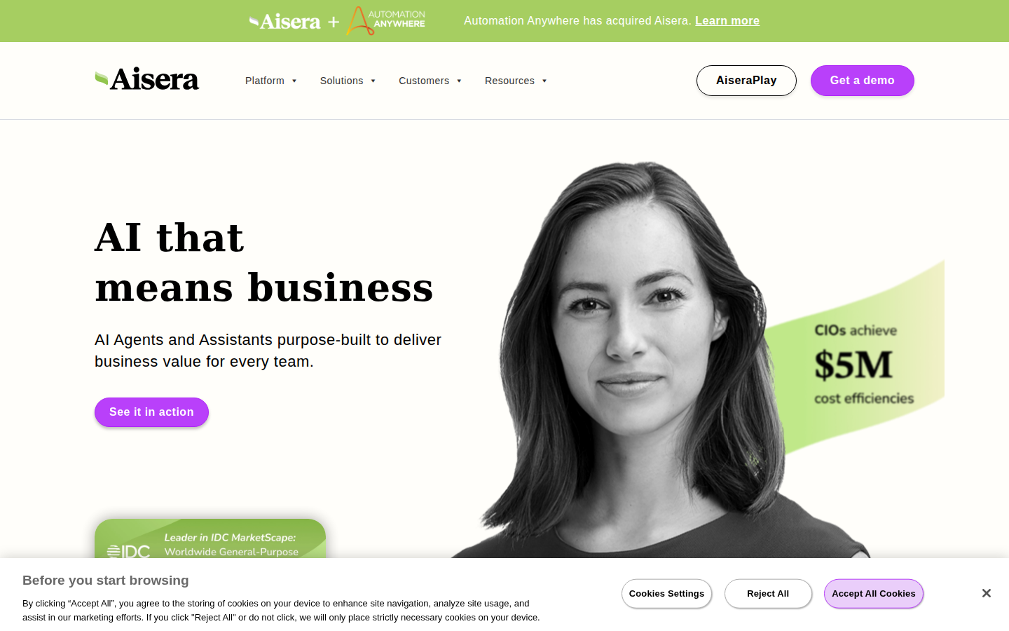 Aisera is a leading agentic AI platform that delivers autonomous AI agents and assistants purpose-built to drive business value across enterprise teams. The company's unified AI agent platform goes beyond simple assistance to enable autonomous execution, automating tasks, delivering answers, and transforming workflows through its System of AI Agents.