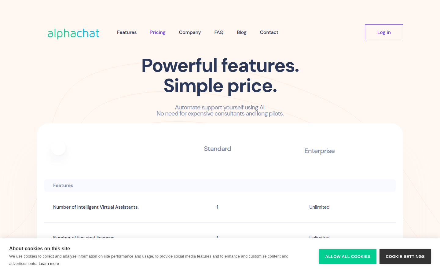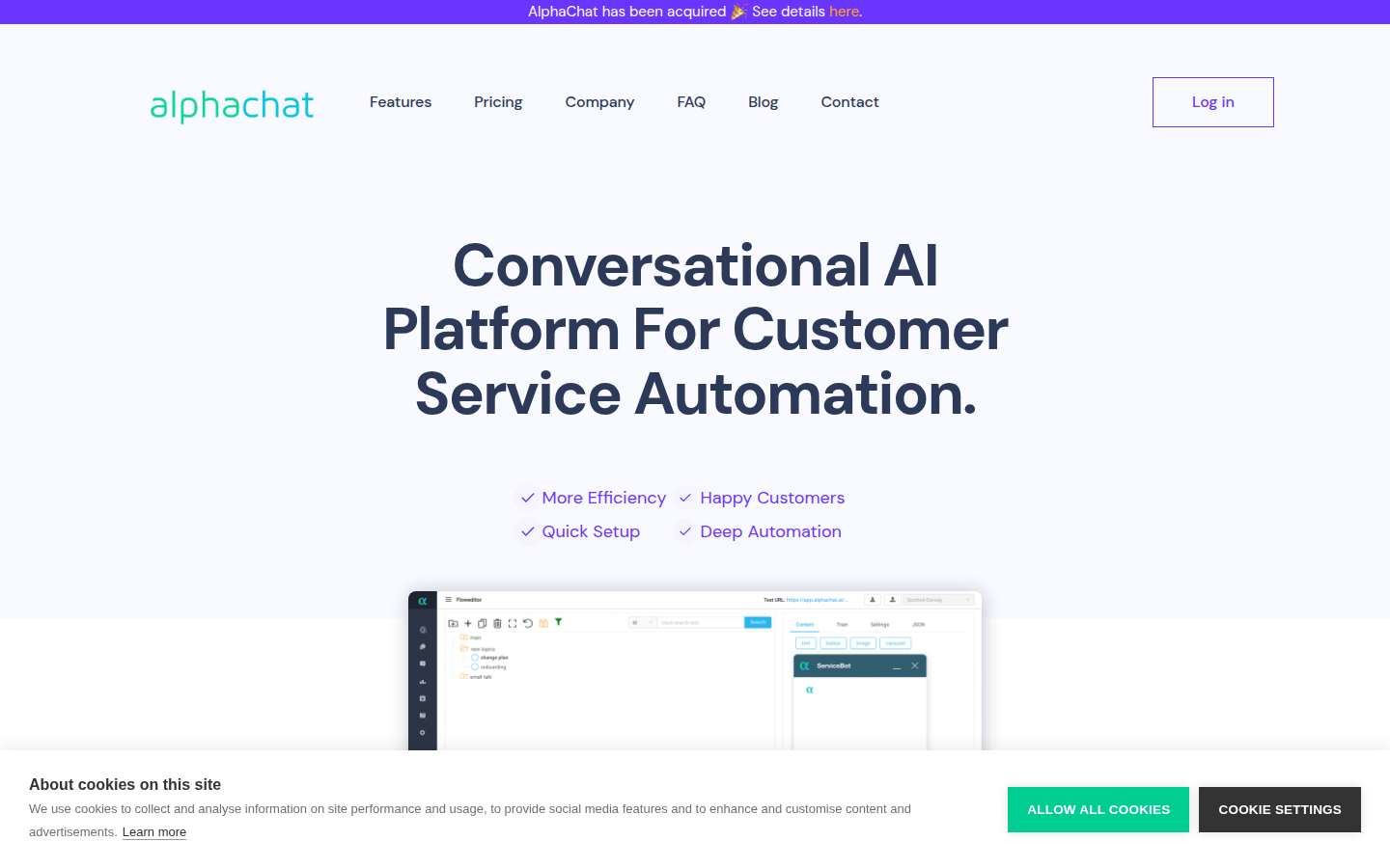 AlphaChat is a Conversational AI platform designed to automate customer service for SaaS businesses. The company's solution enables businesses to create intelligent self-service chatbots that can handle customer FAQs, reduce agent workload, and provide 24/7 support across multiple languages. Their platform features deep automation capabilities, natural language understanding, and can be quickly deployed with enterprise-grade templates.