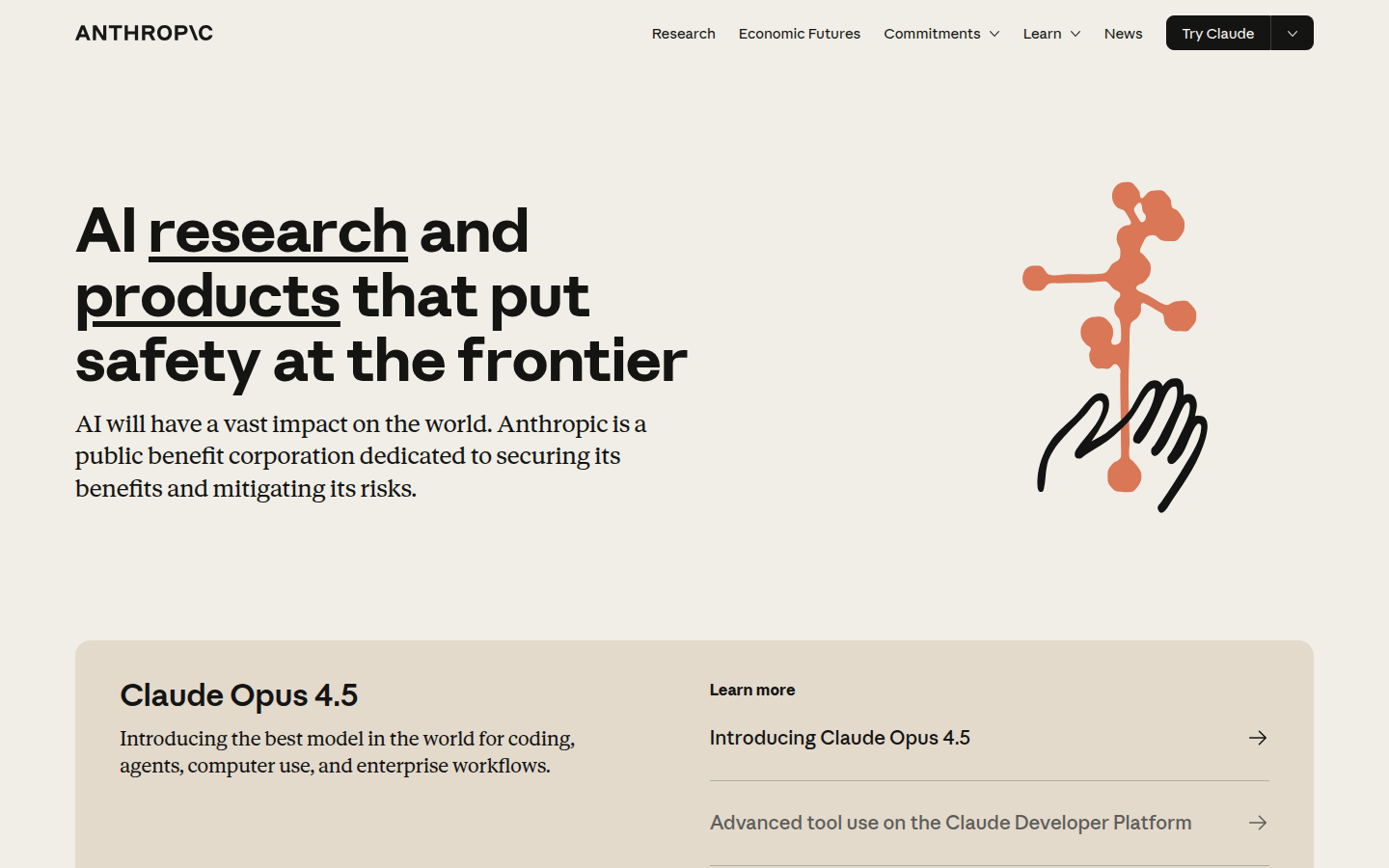 Anthropic is an AI safety company that develops advanced conversational AI systems, with their flagship product being Claude, a large language model designed with human benefit at its foundation. The company focuses on responsible AI development and offers various versions of Claude including Claude Opus 4.5, which they describe as the best model in the world for coding, agents, computer use, and enterprise workflows.