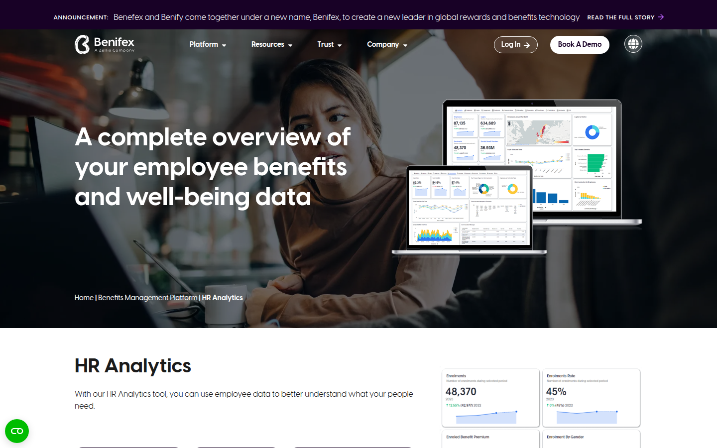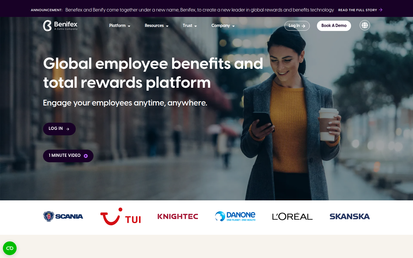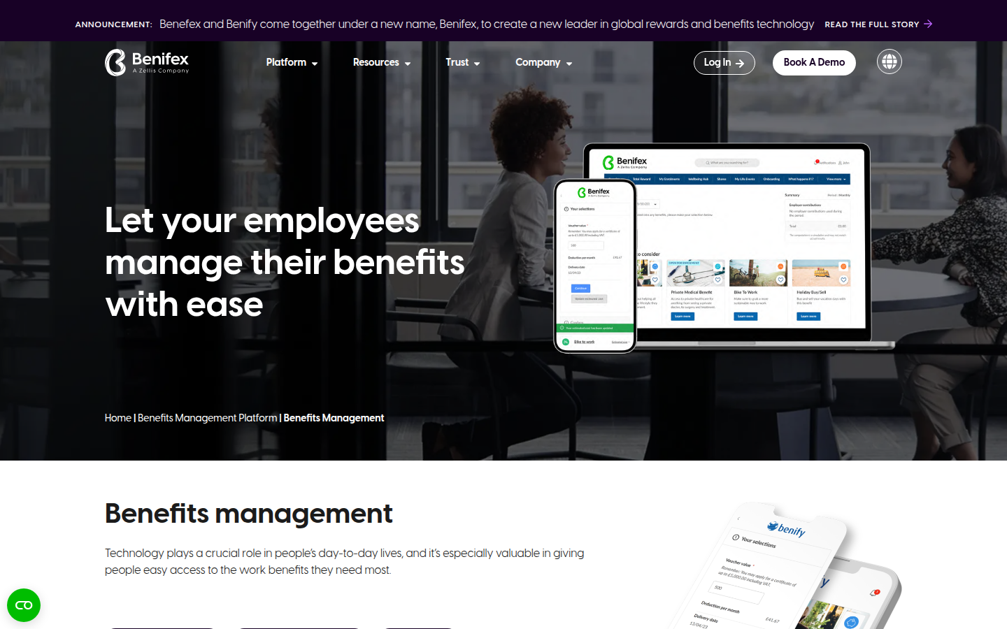 Benifex (formerly Benify and Benefex) is a global HR technology company that provides a comprehensive employee benefits and total rewards platform. The platform helps employers engage their workforce through personalized, interactive benefits management while simplifying administration for HR teams. Benifex offers features including benefits management, HR analytics, employee communication tools, and a generative AI assistant for employee support.