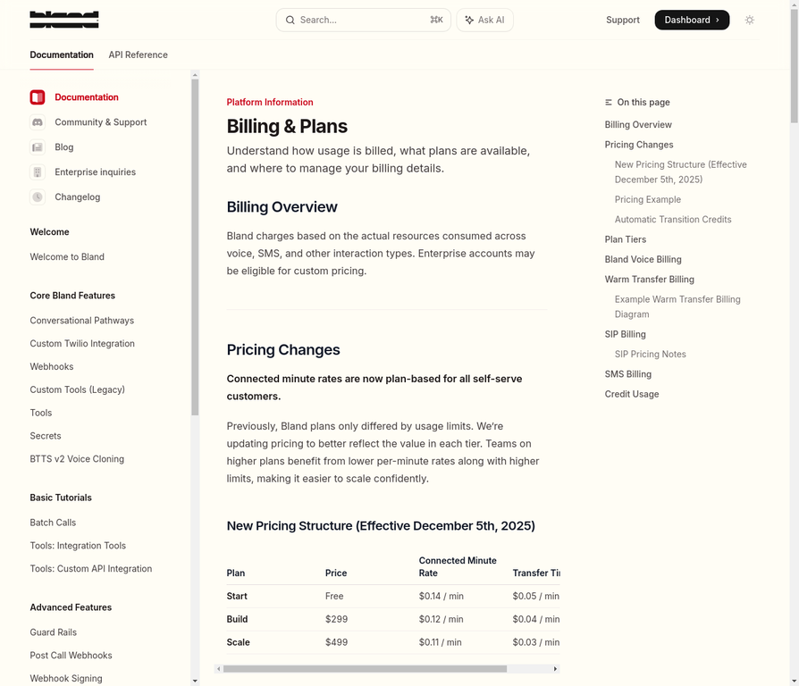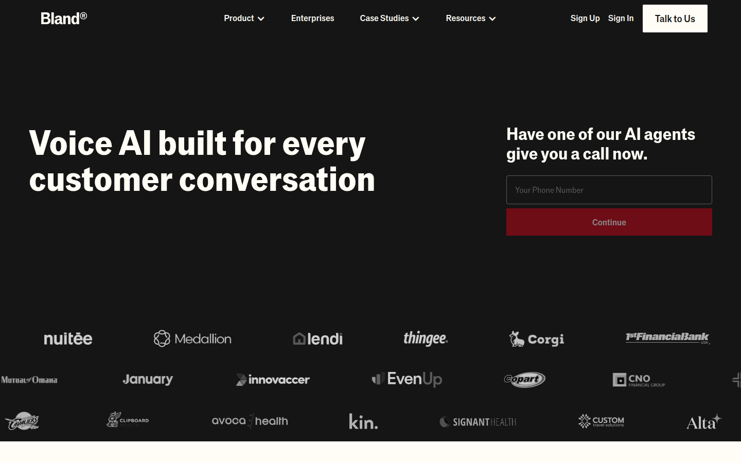 Their platform provides robust API integrations, multi-channel communication capabilities, and the ability to handle up to 1 million concurrent calls. Bland AI emphasizes data security, offering region-specific data storage and protecting customer information on dedicated servers.