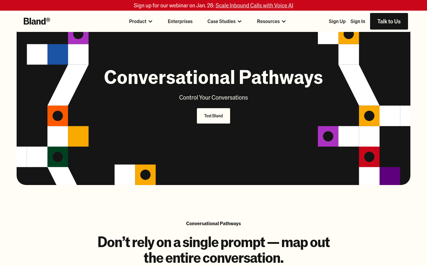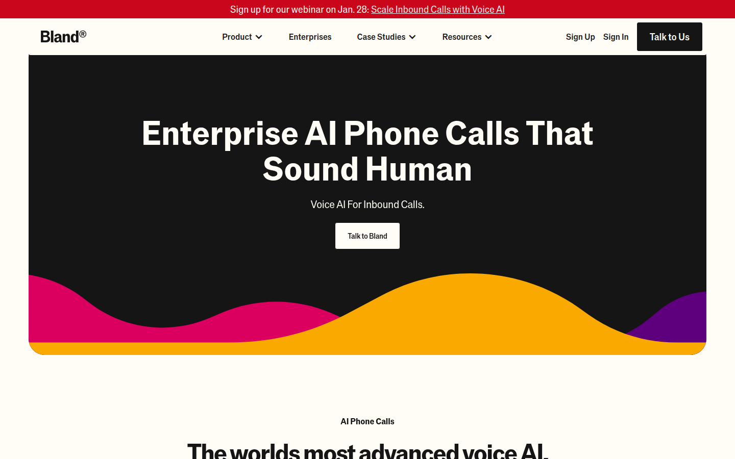 Bland AI is a conversational AI platform specializing in automating phone calls, SMS, and chat communications for enterprises. The company offers custom-trained AI models with dedicated infrastructure, enabling businesses to build AI agents that can handle customer support, sales, and other communication needs across various industries and languages.