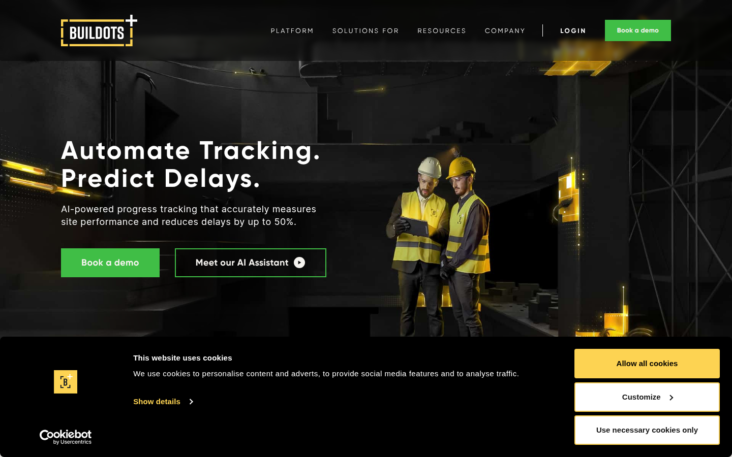 Buildots is a construction technology company that provides AI-powered progress tracking and management solutions for construction projects. Their platform automates manual processes by integrating project design and schedules to create baselines for success, then uses advanced analytics to track actual progress against plans. The company offers several key products including Delay Forecast for predictive early warnings, Plan Tracker for enhanced project planning and collaboration, and Dot, an intuitive AI assistant that answers project progress questions in real-time. Buildots serves major construction companies and helps them achieve greater visibility, control, and efficiency on complex projects. Their solution consolidates data automatically into comprehensive dashboards, enabling construction teams to identify potential issues before they impact timelines and make data-driven decisions to optimize resource allocation and project outcomes.
