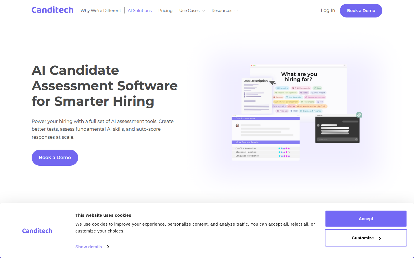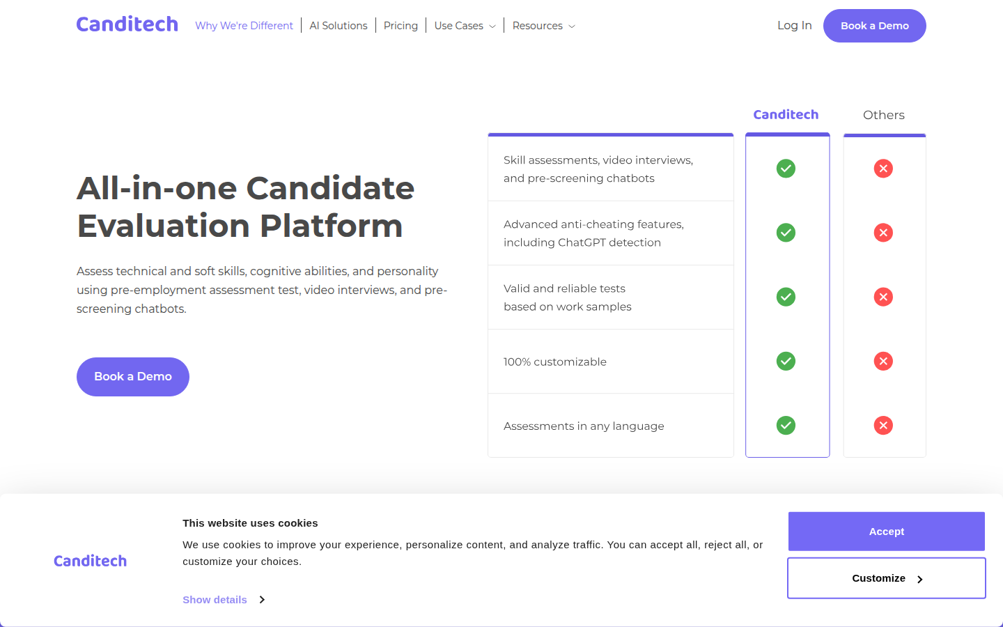 Canditech is a comprehensive pre-employment assessment platform that leverages AI to help companies evaluate candidate skills across technical and soft domains. The platform offers job simulations, AI-powered assessments, and automated screening tools that enable organizations to make data-driven hiring decisions more efficiently. Companies can choose from 500+ expert-made tests, customize assessments, and integrate with 40+ ATS platforms to streamline their recruitment process.