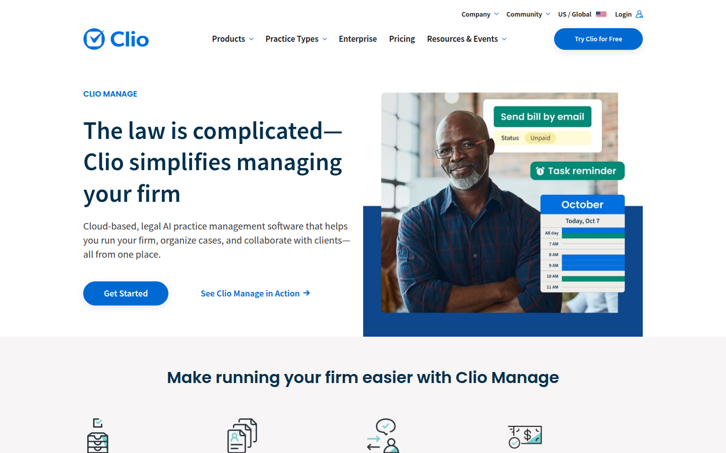 Clio's platform includes embedded AI that automates tasks and research, case management, document automation, billing, client relationship management, and legal research through Clio Work. The AI understands firm context and delivers trusted legal research, analysis, and case strategy while maintaining strict data privacy and security standards. The platform serves over 400,000 legal professionals across more than 130 countries and is approved by over 100 bar associations worldwide, including all 50 US state bars.