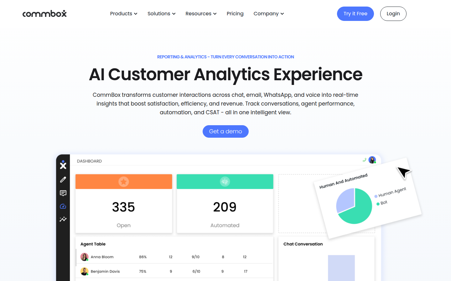 CommBox is an enterprise-grade AI Customer Engagement Platform that enables businesses to create intelligent conversational experiences across voice, messaging, and web channels. The platform helps companies automate complex customer requests, consolidate communications, and transform service interactions into sales opportunities.