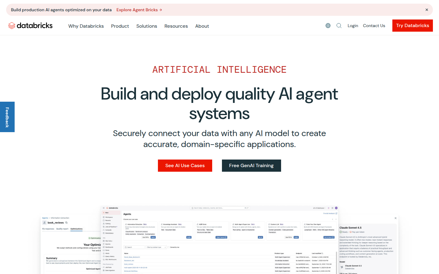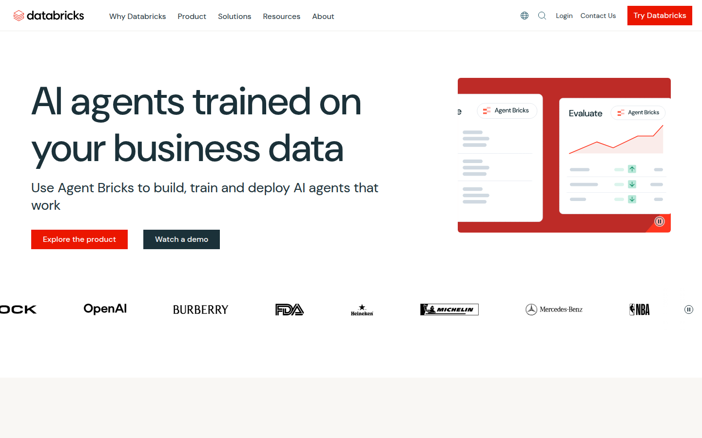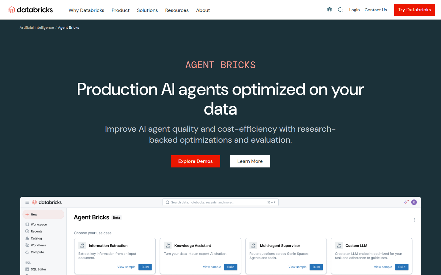 The platform features Agent Bricks for building, training and deploying AI agents, along with comprehensive tools for data governance, lakehouse architecture, and intelligent data processing. Databricks serves enterprise customers across industries, providing solutions for AI model development, data analytics, and business intelligence with a focus on simplifying complexity and driving down costs through unified data and AI governance.
