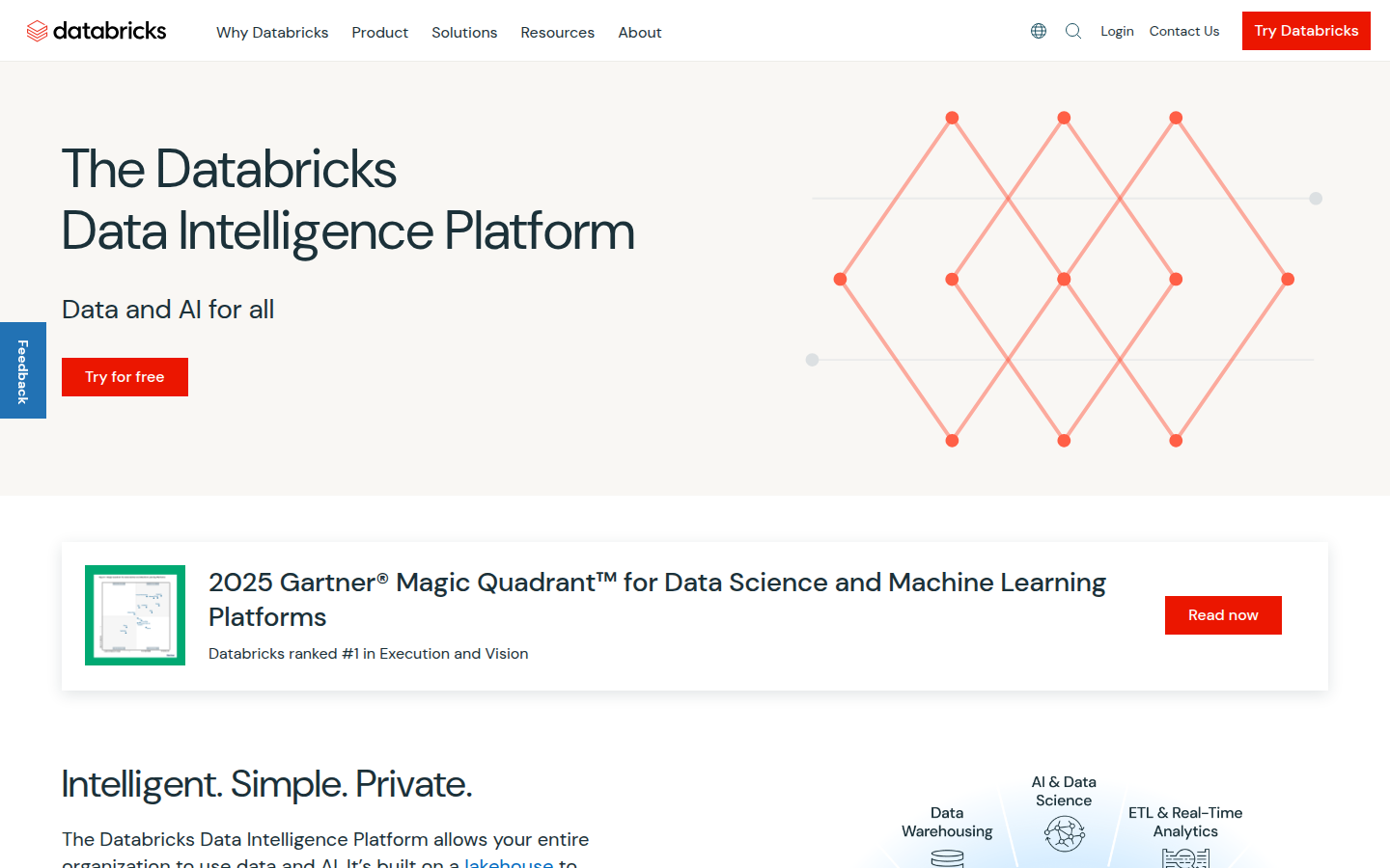 Databricks is a leading provider of data intelligence platforms that brings AI to enterprise data to help organizations deploy AI solutions at scale. The company offers a unified platform that combines data warehousing, ETL, governance, and AI capabilities in a single solution, enabling businesses to develop generative AI applications while maintaining data privacy and control.