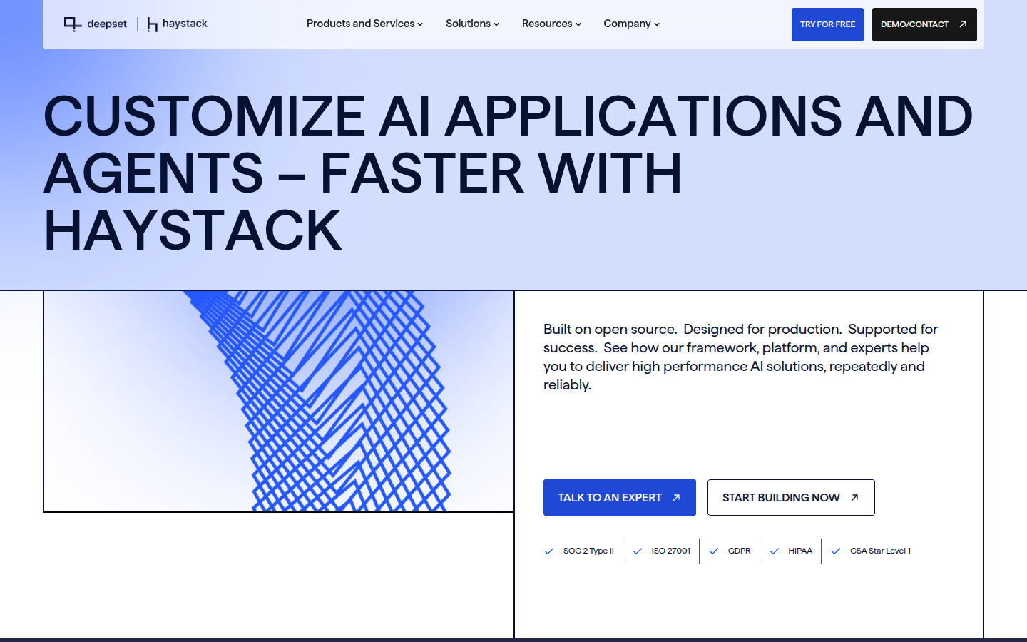 The company offers multiple products including the open-source Haystack framework, Haystack Enterprise Starter with support and consulting, and the Haystack Enterprise Platform for visual pipeline building and governance. Deepset serves diverse industries including finance, legal, media, government, healthcare, and retail, helping organizations deploy trusted, sovereign AI solutions with full control over data and models. The company has been recognized as a Gartner Cool Vendor in AI Engineering and emphasizes building AI solutions where trust, control, reliability, and outcomes matter most.