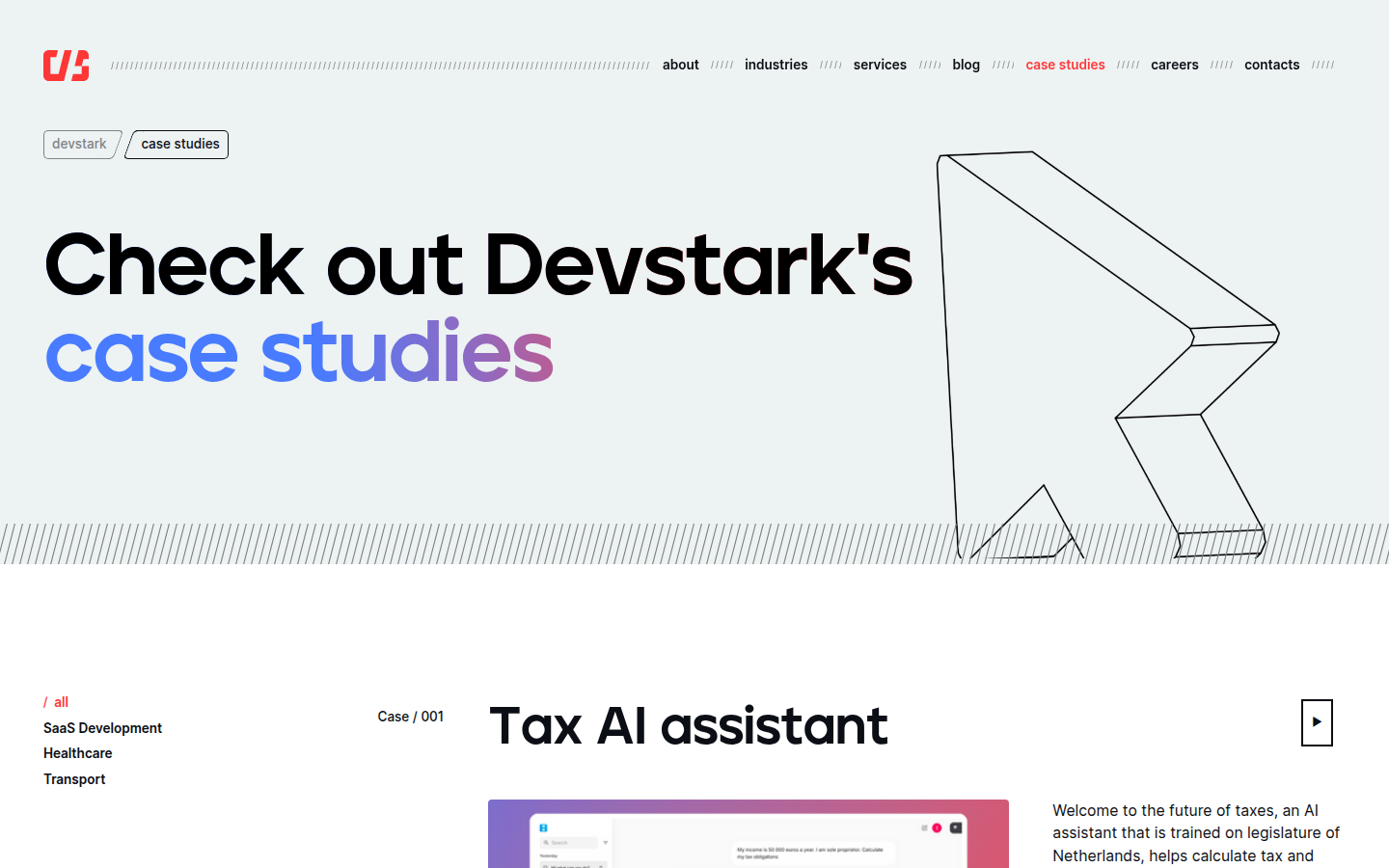 Devstark offers a range of services including AI-powered knowledge management systems, tax calculation assistants, enterprise e-commerce platforms, and custom software development. Their expertise spans across multiple industries including healthcare, transport, education, and travel & hospitality. The company focuses on delivering measurable impact through proven technologies selected for scalability, efficiency, and ROI.