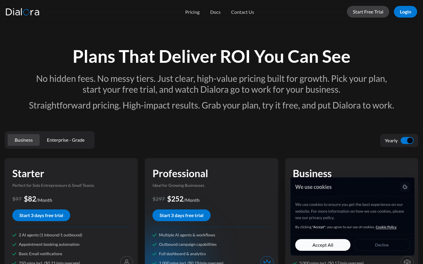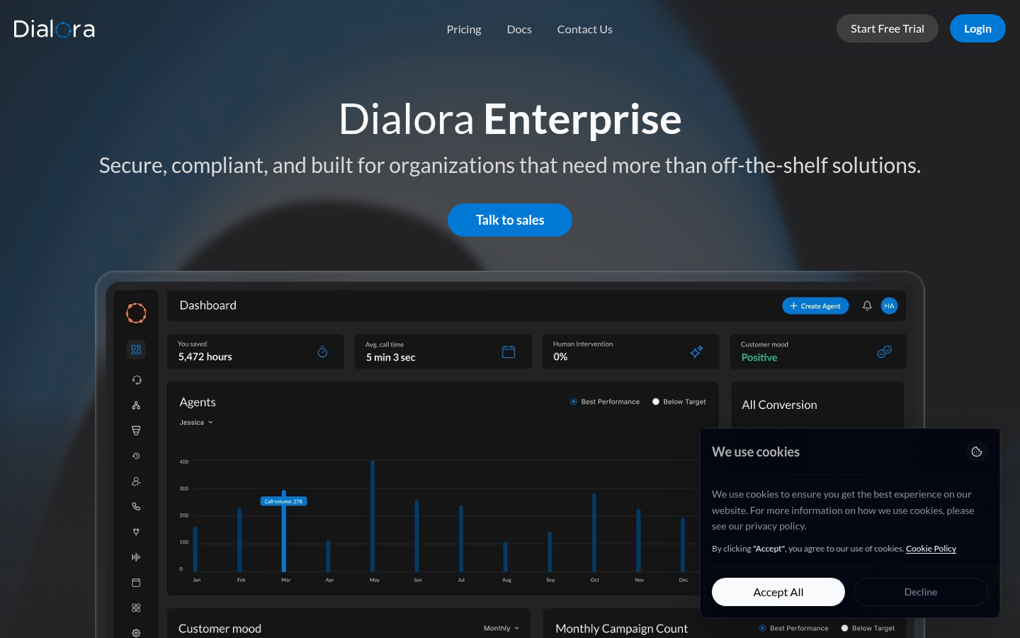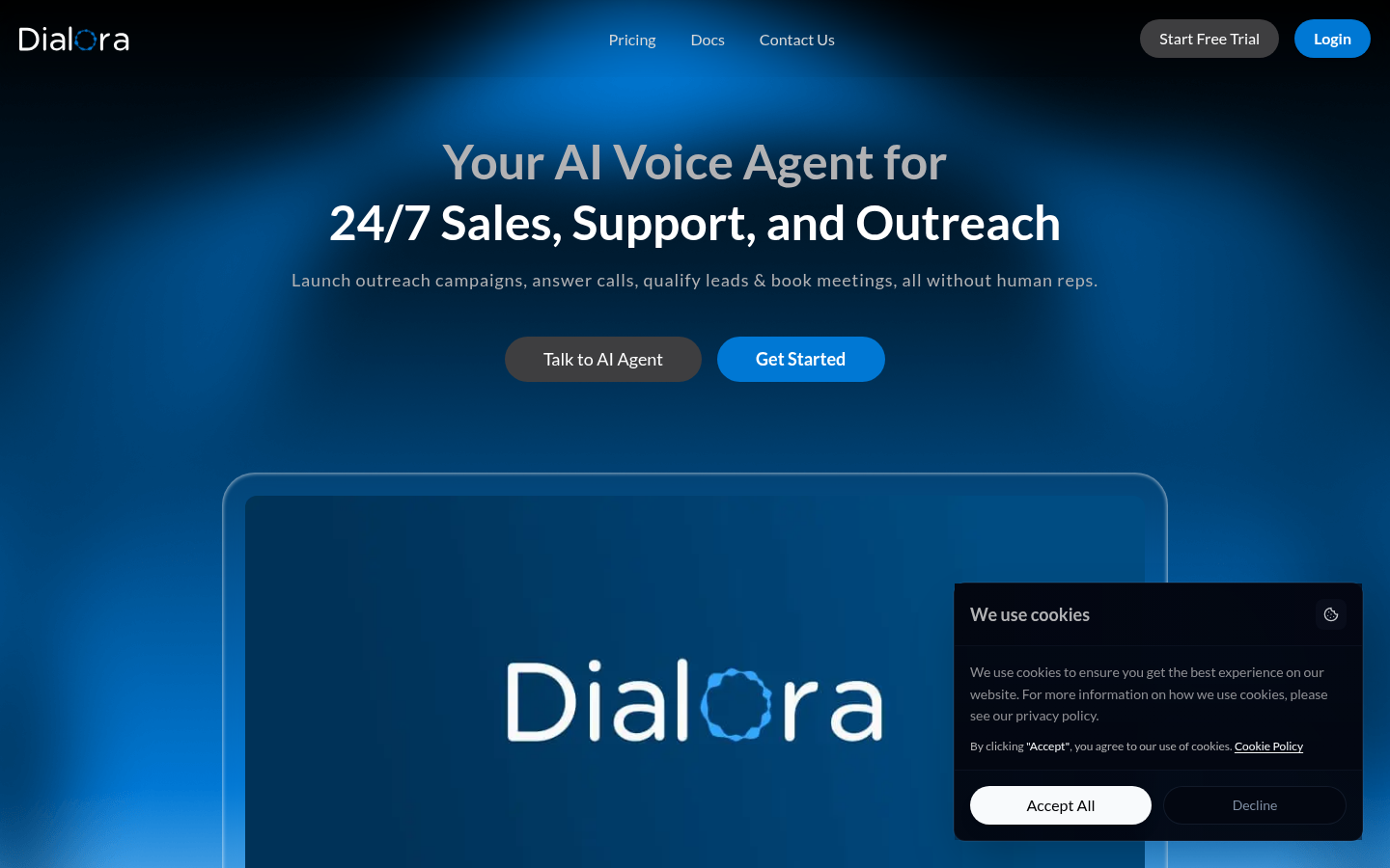 Dialora AI is a conversational AI platform that provides smart AI voice agents for businesses to automate sales, support, and outreach activities. The platform enables companies to launch outbound campaigns, answer inbound calls, qualify leads, and book meetings 24/7 without human representatives. Dialora's voice agents can be trained on business-specific knowledge and customized with different voices, speaking speeds, and response lengths. The platform supports multiple languages and offers pre-built industry templates for various use cases including real estate, healthcare, retail, legal, and hospitality. With full CRM integration and API connectivity, Dialora helps businesses streamline their entire sales flow while providing call transcripts, sentiment analysis, and automated data extraction to continuously improve performance.