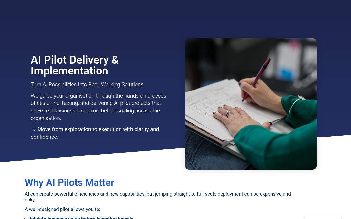 The company offers end-to-end AI delivery services, from strategy and data readiness to proof-of-value and full deployment. Their approach focuses on de-risking AI investments, quantifying ROI early, and ensuring solutions integrate with real workflows rather than just serving as demos. EBM provides senior AI engineering, full-stack development, project management, and strategic thinking on demand, allowing organizations to access experienced AI capabilities without recruitment overhead or long-term commitments.