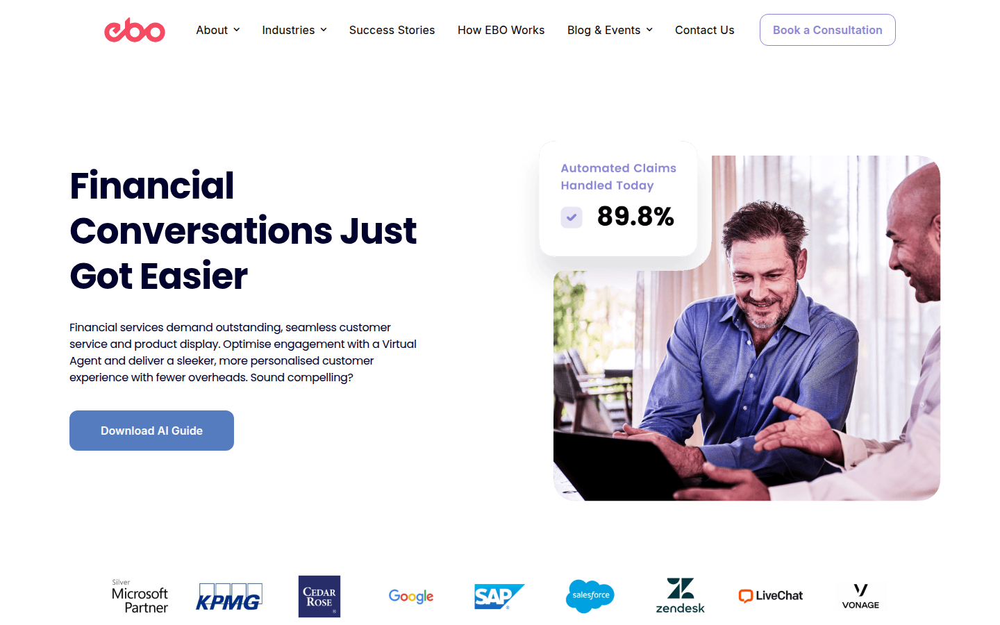 EBO's platform features empathetic AI that enables natural, human-like conversations with context awareness and sentiment analysis. The solution is designed to be adaptive, culturally aware, and inclusive, responding to language preferences, reading levels, and accessibility needs. The platform integrates seamlessly with existing systems and has demonstrated significant results for clients, including cost savings, reduced missed appointments, and improved customer satisfaction rates.