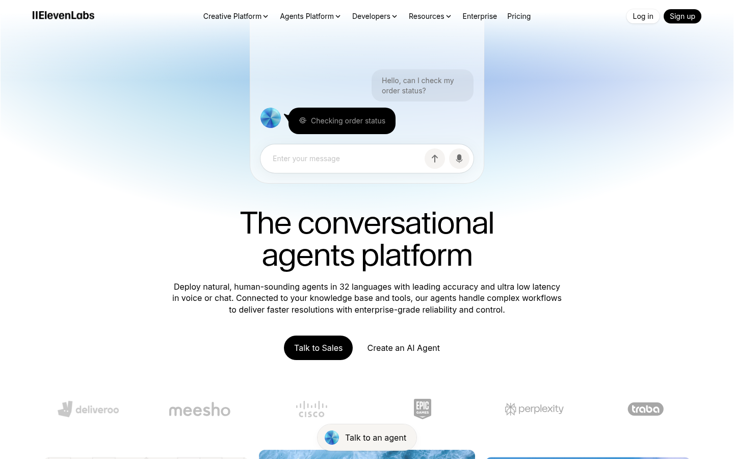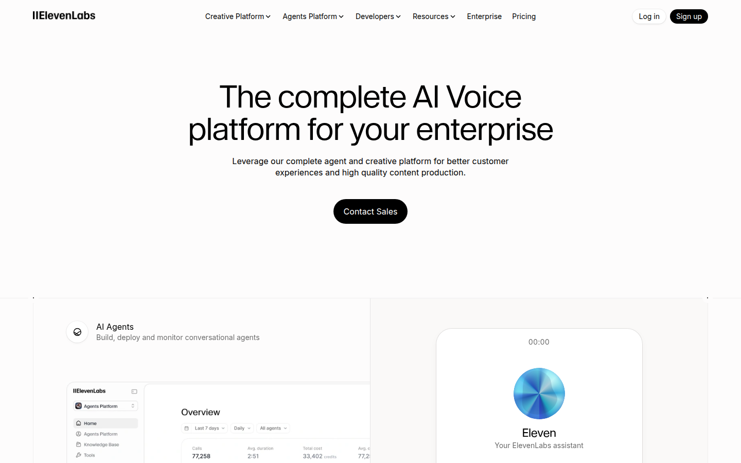 The company's technology includes their flagship Eleven v3 model for expressive speech, conversational AI agents that can handle phone calls and customer interactions, and enterprise solutions for call centers, customer service, AI assistants, and media creation tools. ElevenLabs supports 29+ languages and provides APIs and SDKs for developers to integrate voice AI capabilities into their applications. Their platform emphasizes responsible AI use through moderation, accountability and provenance features.