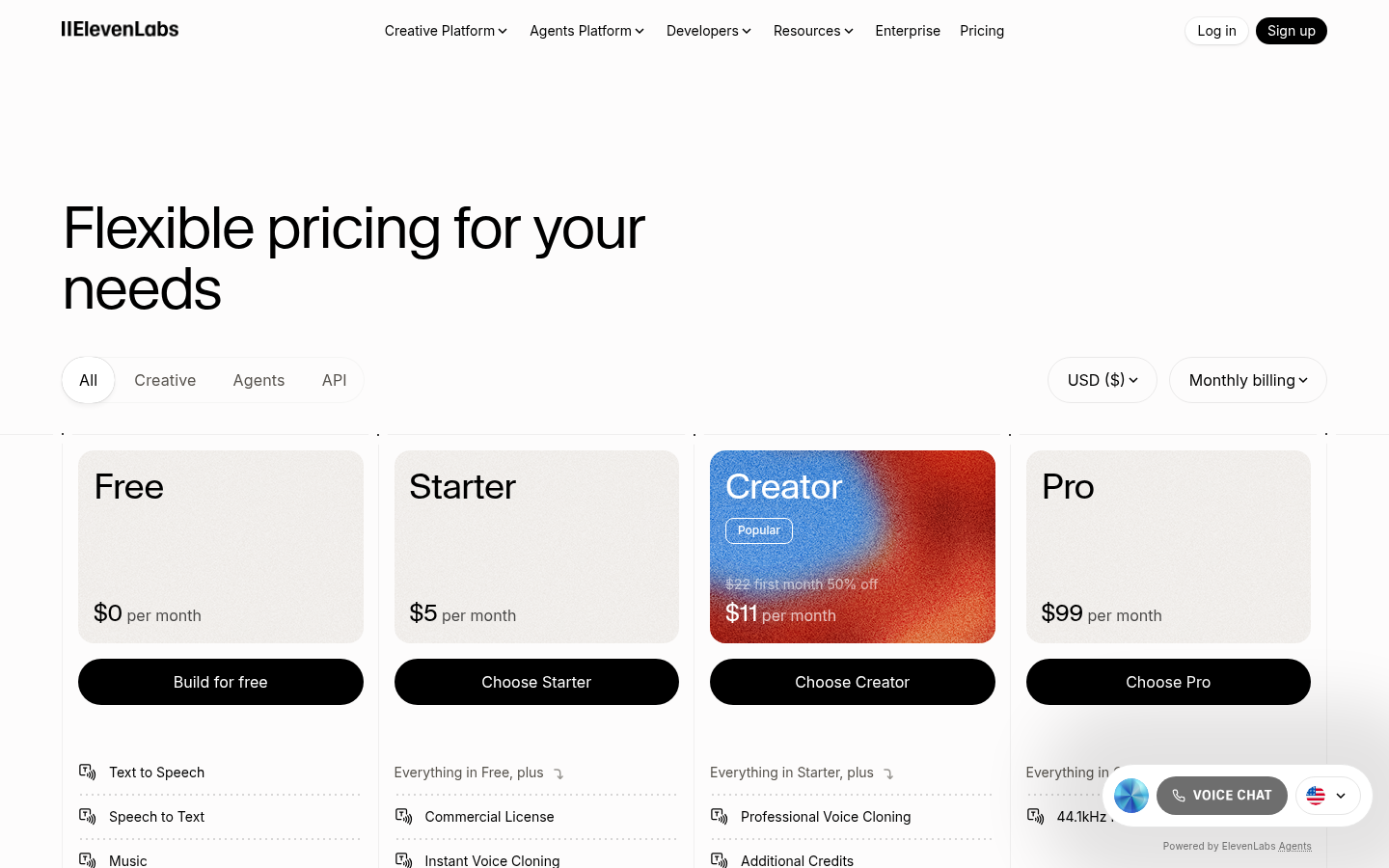 ElevenLabs is a leading voice AI platform that provides realistic speech synthesis and conversational AI capabilities to millions of developers, creators, and enterprises. The company offers a comprehensive suite of AI audio products including text-to-speech, voice cloning, speech-to-text, dubbing, AI music generation, and voice agents. Their platform serves multiple use cases from low-latency conversational agents to high-quality voiceovers for audiobooks and media content.