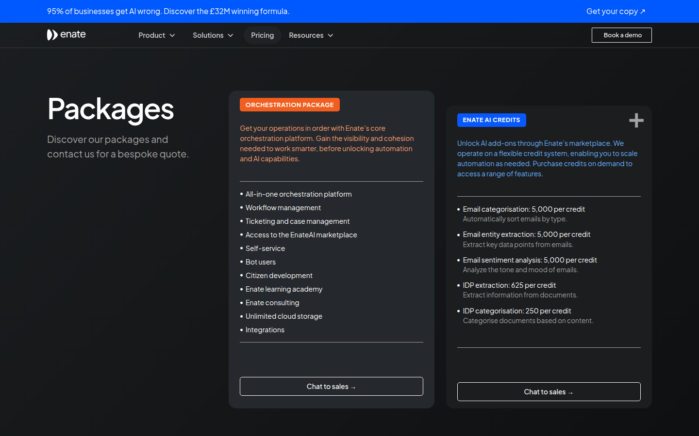 Enate is a process orchestration platform designed specifically for B2B service organizations. The company provides work management, automation management, and inbox management solutions that help service teams orchestrate work across their entire organization while automating repetitive tasks. Enate's platform includes AI capabilities through EnateAI, featuring intelligent document processing, email management, and sentiment analysis.