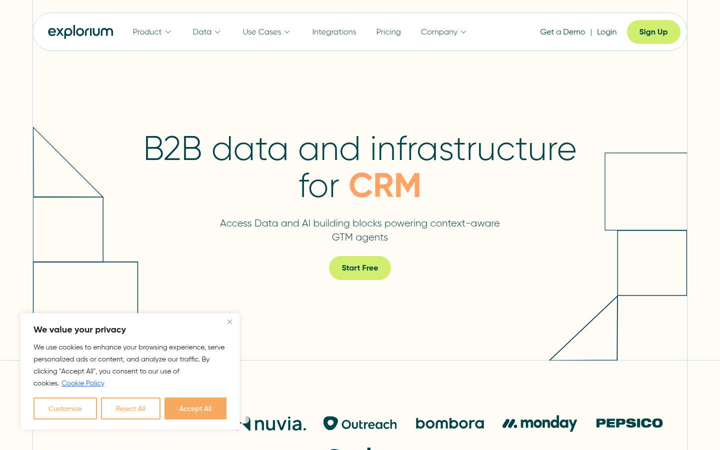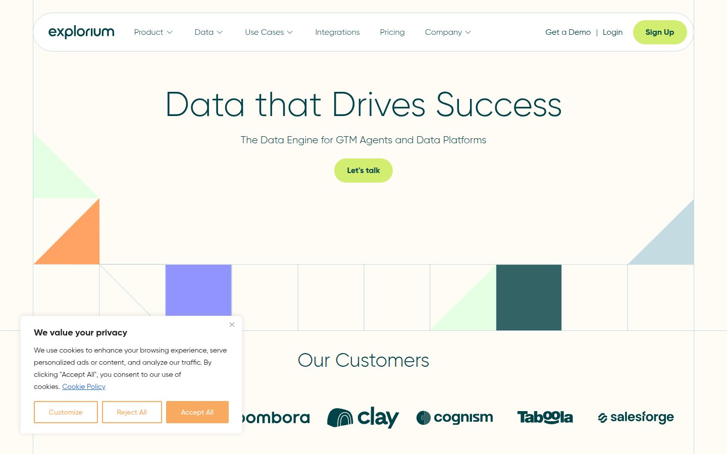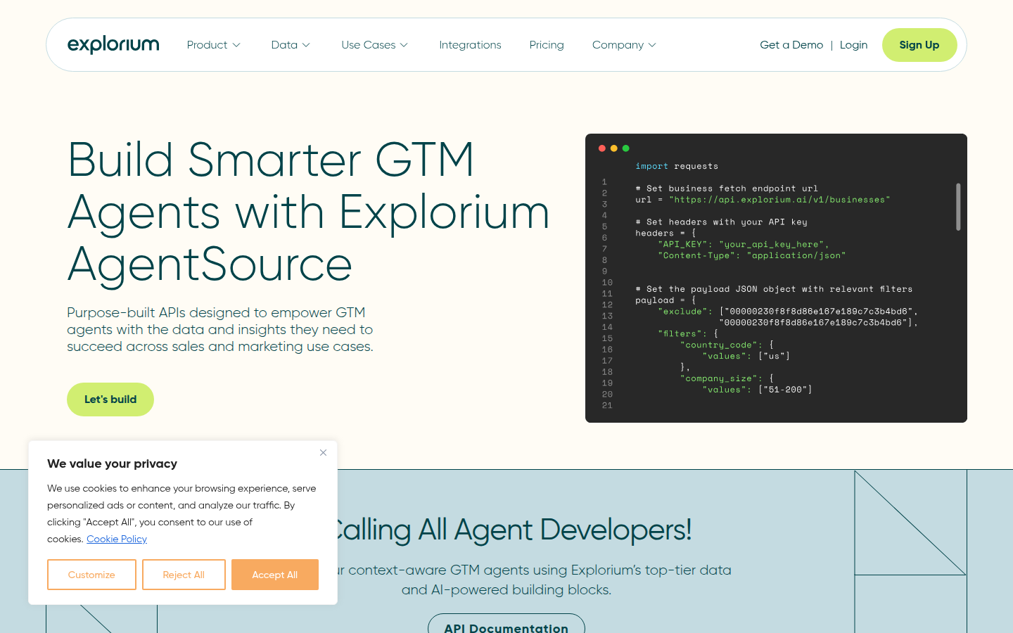 Explorium is a data and infrastructure company specializing in providing comprehensive B2B data solutions for AI-powered go-to-market strategies. Their platform offers access to over 100 data sources, covering 150M+ companies and 800M+ people, with structured and harmonized data designed specifically for AI agents and business intelligence.