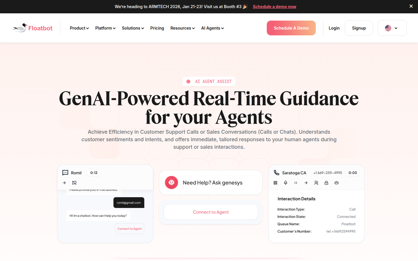 Floatbot.AI's platform features their proprietary LLM-powered technology stack including Agent M (their master agent framework), VoiceGPT for real-time voice interactions, and Floatbot UNO - a no-code, enterprise-grade GenAI platform. The company serves multiple industries with particular strength in insurance, debt collections, banking, and contact centers, delivering proven ROI with clients reporting up to 80% reduction in support costs, 60% increase in collection rates, and significant improvements in agent productivity and customer satisfaction.