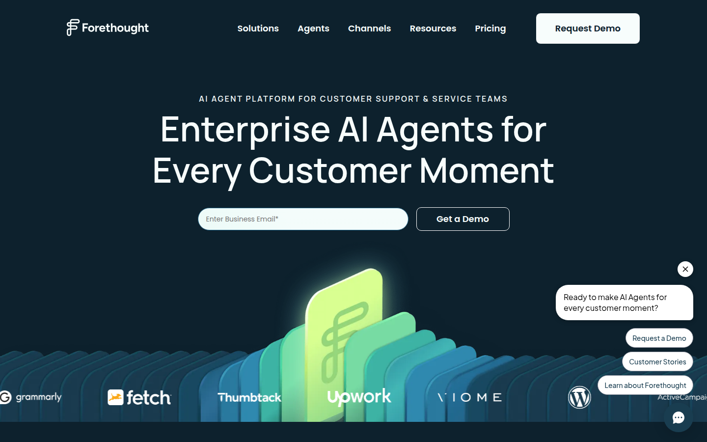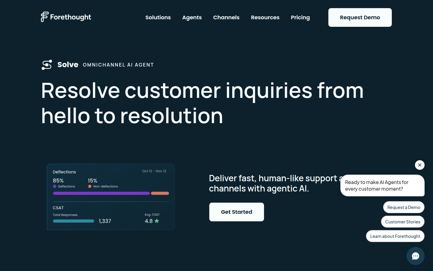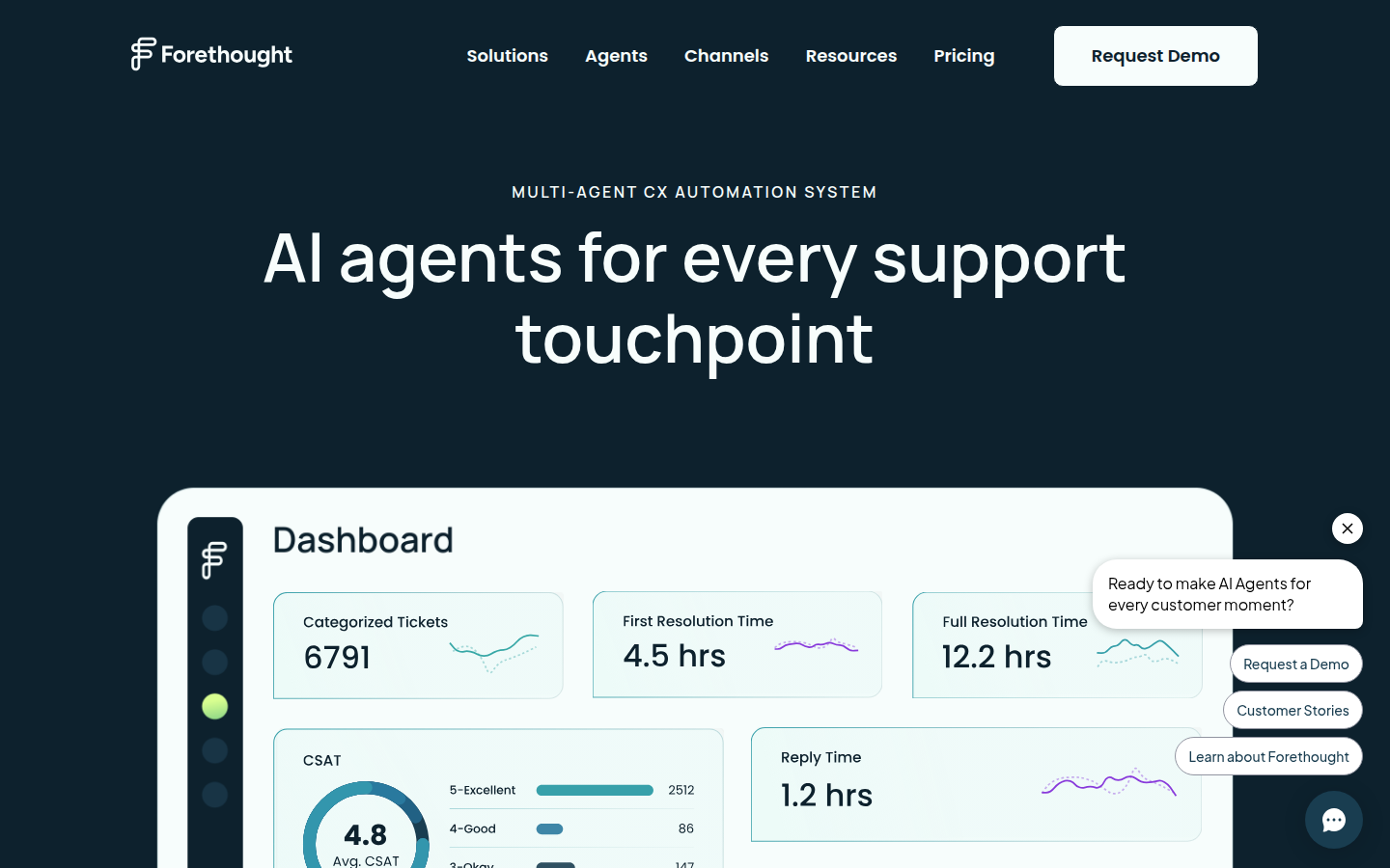 Forethought is a leading AI agent platform designed specifically for customer support and service teams. The company provides fully agentic AI agents that don't just understand customer intent but reason, decide, and take action using business policies to deliver end-to-end customer support automation. Their multi-agent system includes AI-surfaced insights, omnichannel agents, smarter ticket classification, and agentic AI copilots.