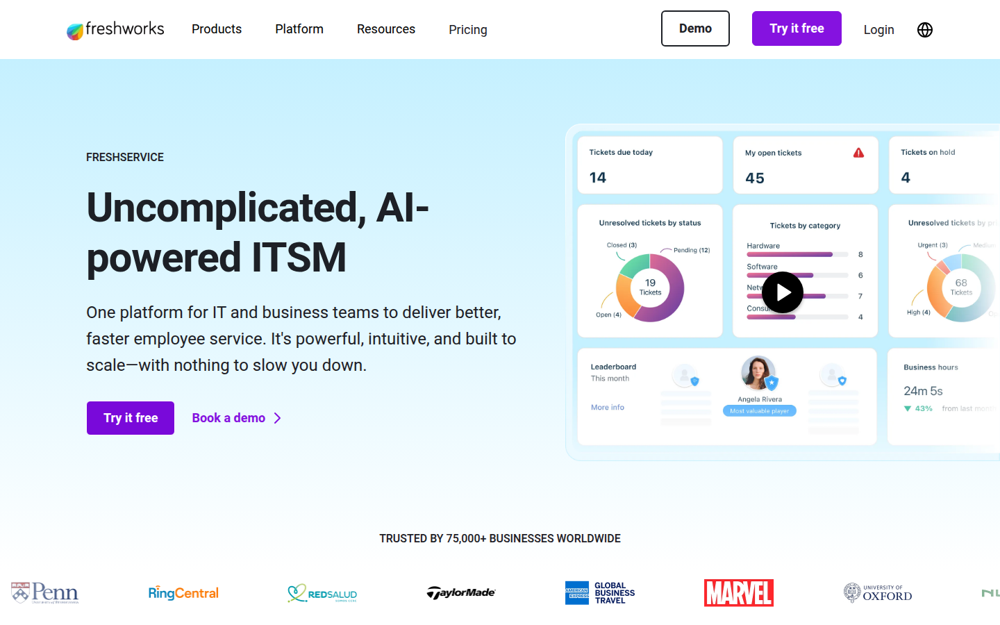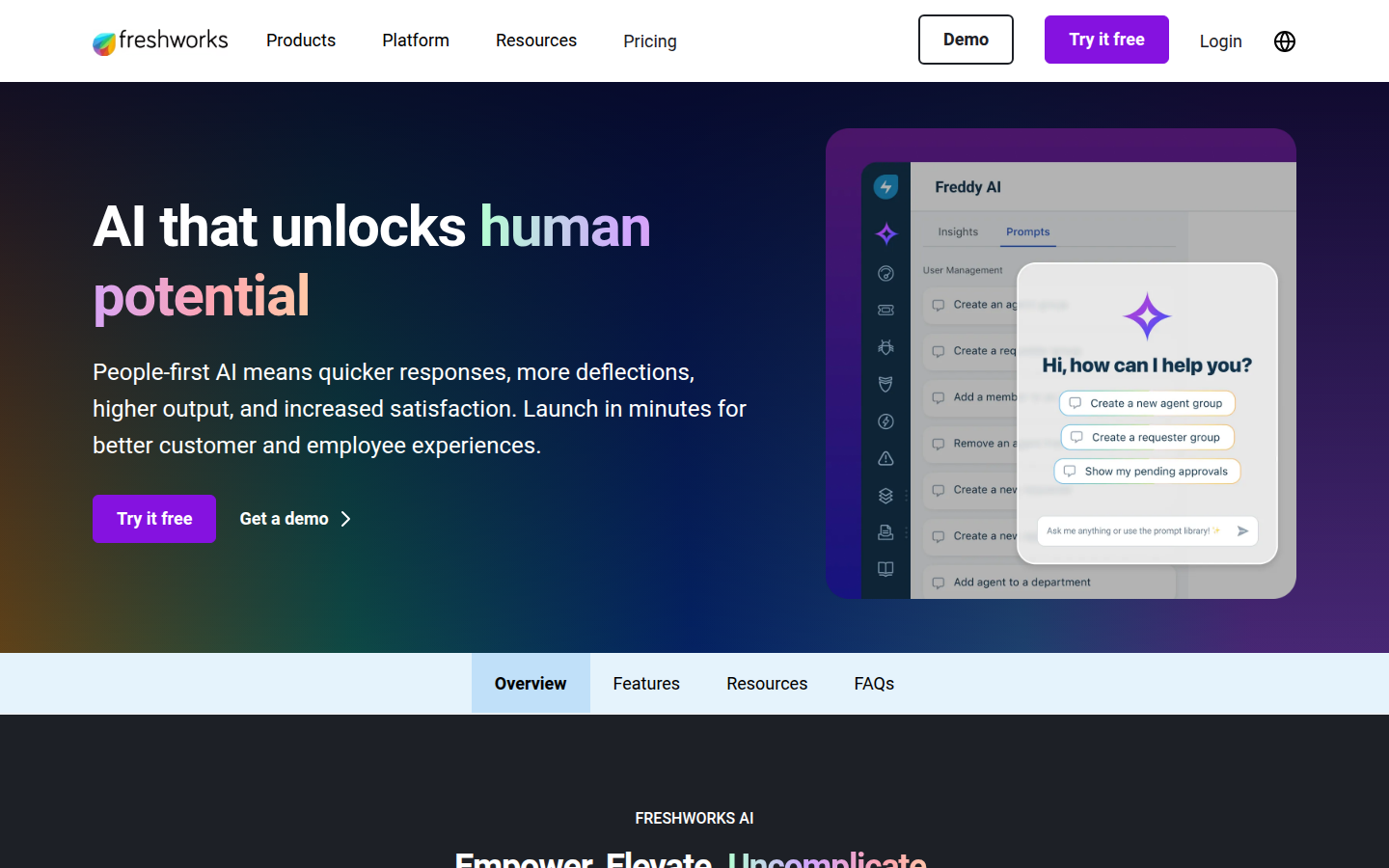 Freshworks provides enterprise-grade, AI-assisted service software designed to deliver exceptional customer and employee experiences. The company offers two main solutions: Freshdesk for modern AI-assisted customer service and Freshservice for uncomplicated AI-assisted IT Service Management (ITSM). Both platforms are powered by Freddy, their agentic AI that reasons, acts, and resolves issues.