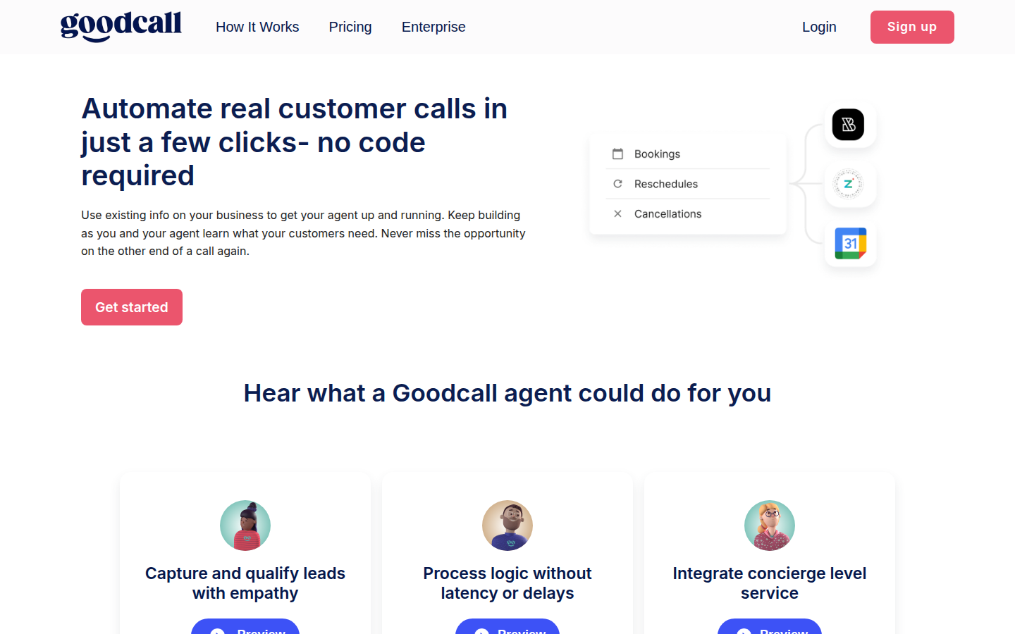 Goodcall is an AI-powered phone agent platform that enables businesses to automate customer interactions and phone-based workflows. The company provides a no-code solution for creating intelligent phone agents that can handle appointment scheduling, lead capture, customer support, and other communication tasks. Their platform allows businesses to quickly deploy custom AI phone agents that integrate with existing business tools and CRM systems.