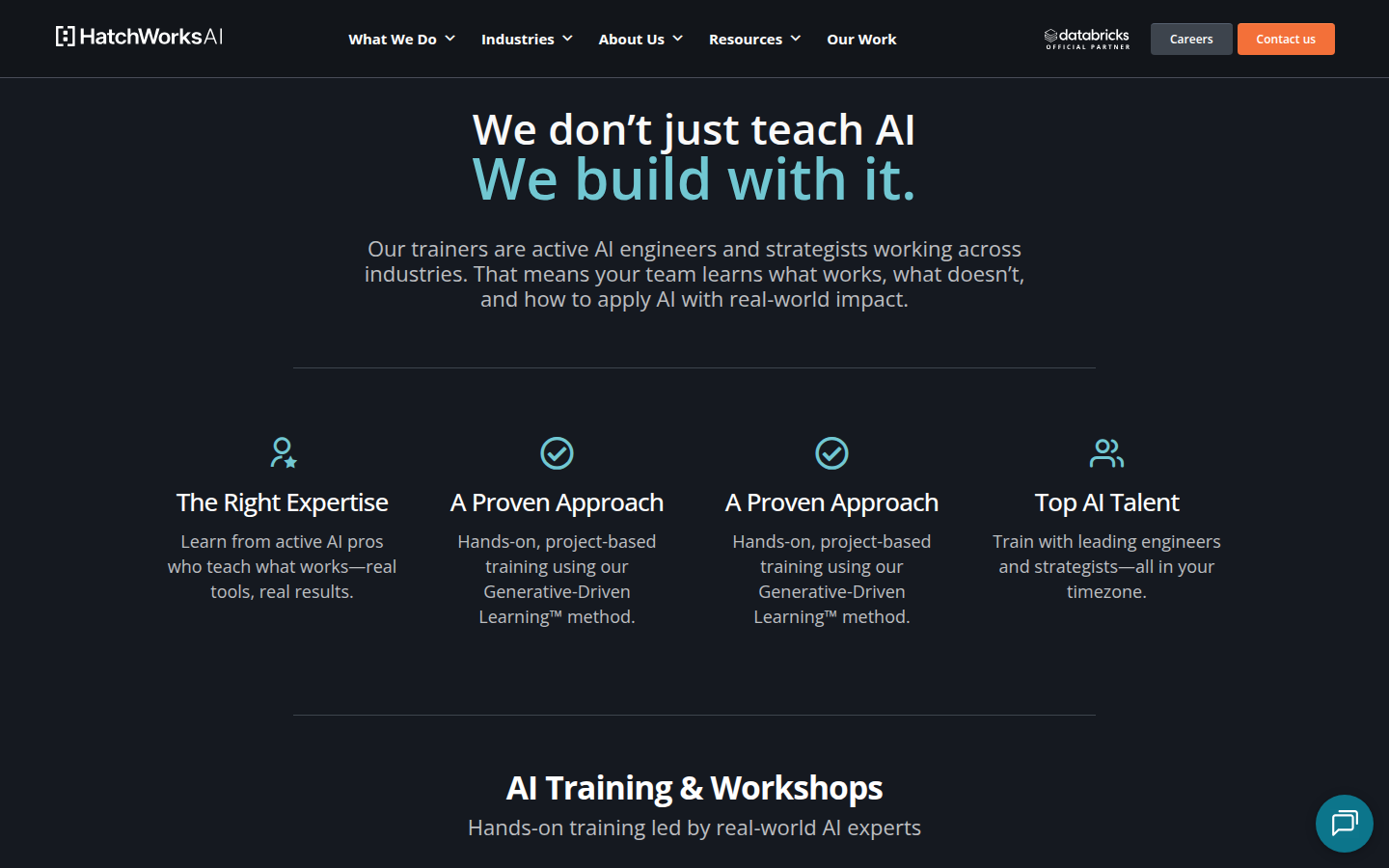 HatchWorks AI is a specialized AI development and consulting partner focused on helping businesses transform their operations through strategic AI implementation. The company offers end-to-end AI services, including AI strategy development, data engineering, AI training, and software development using their proprietary Generative-Driven Development™ methodology.