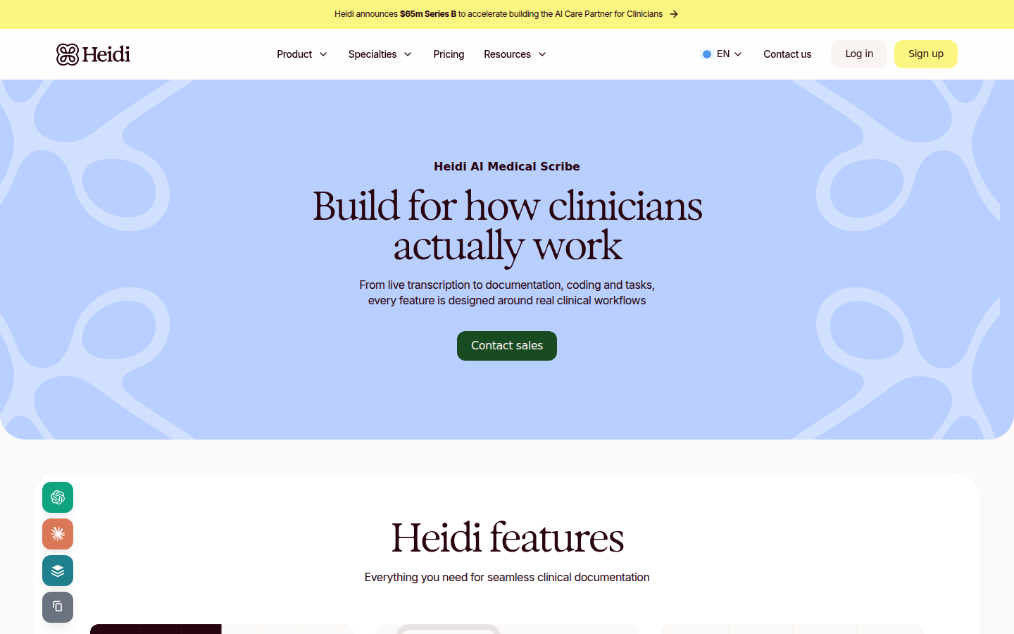 The company serves healthcare professionals across multiple specialties including general practice, surgery, critical care, mental health, and veterinary medicine. With over 200 medical specialties using the platform, Heidi has reportedly returned more than 8 million hours to clinicians annually and supports over 2 million patient consultations per week. The platform emphasizes clinical accuracy through deep medical review processes and maintains high security standards for patient data protection.