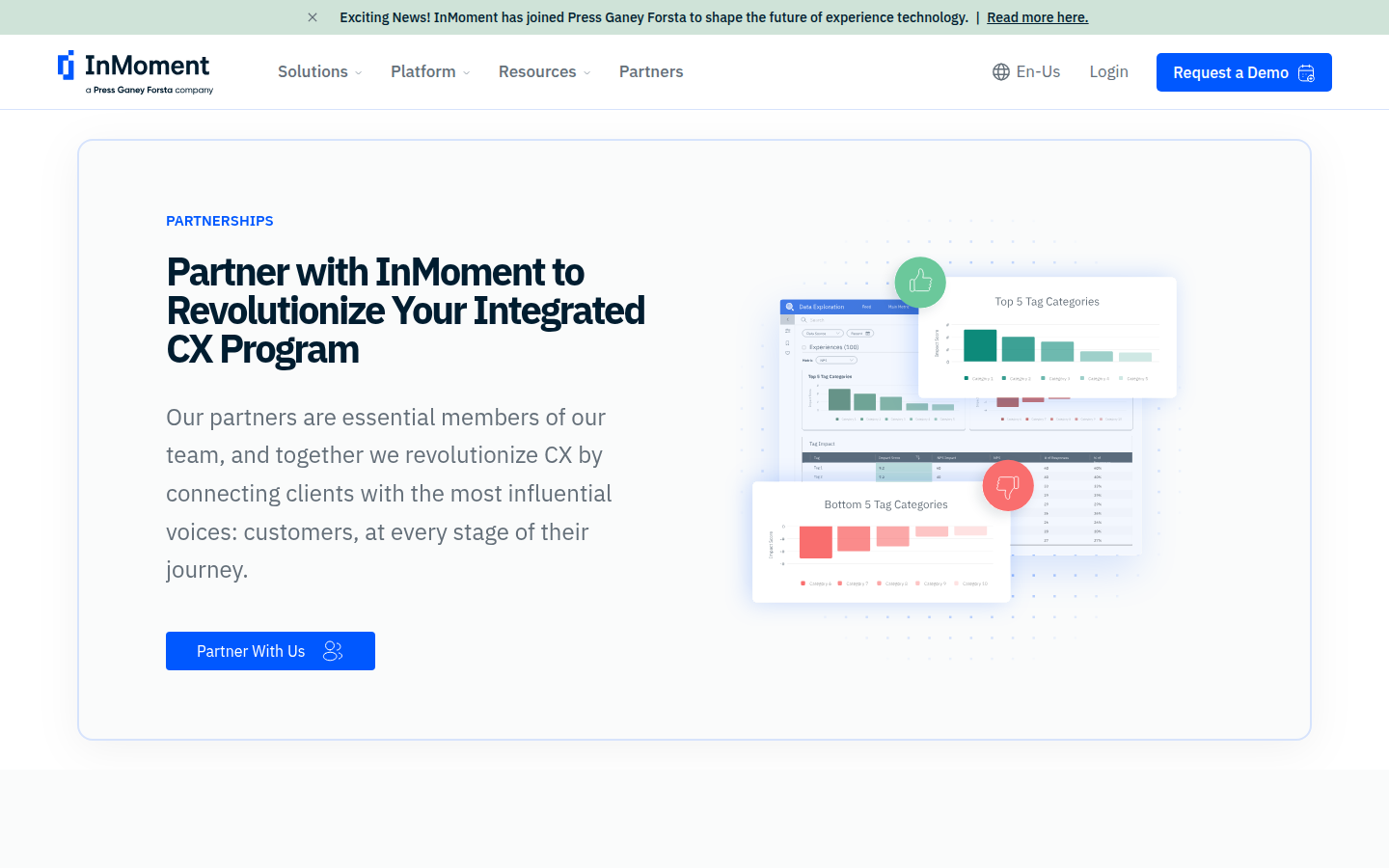 InMoment is a customer experience (CX) platform that uses artificial intelligence to help businesses collect, understand, and act on customer feedback across all channels. The platform captures feedback from surveys, conversations, ratings and reviews, and other touchpoints, using AI-powered listening to gather 2.4x more actionable feedback than traditional methods.