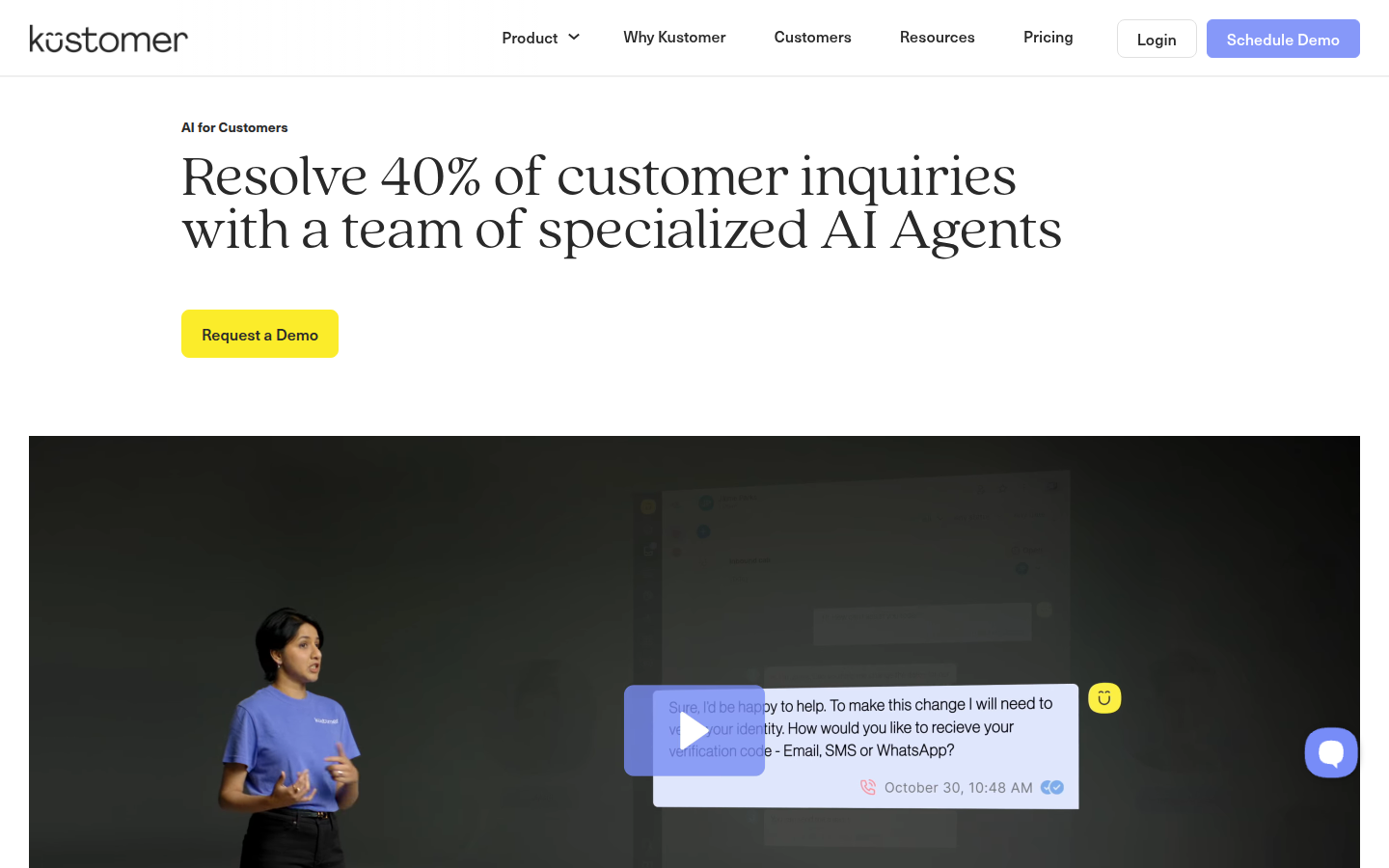 The platform features AI Agents for both customers and representatives, providing instant human-like support and empowering agents with AI assistants that handle routine tasks. Kustomer's solution includes omnichannel capabilities, workflow automation, data analytics through Data Explorer, and AI Agent Studio for building custom AI agents without developer requirements. The platform is designed to increase team capacity by up to 30% while delivering personalized, proactive service across all customer touchpoints.