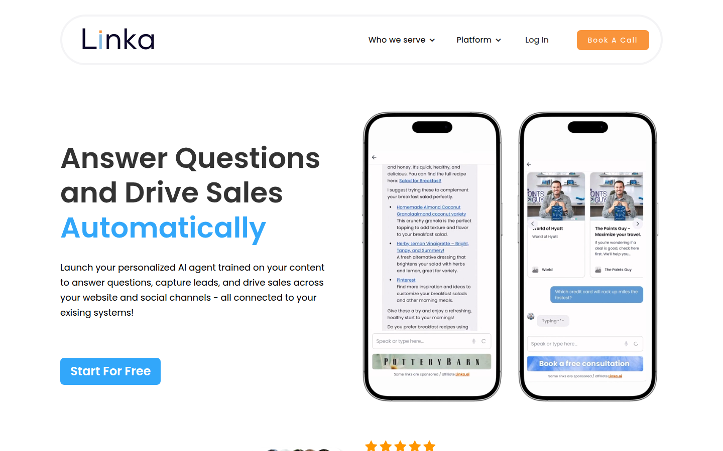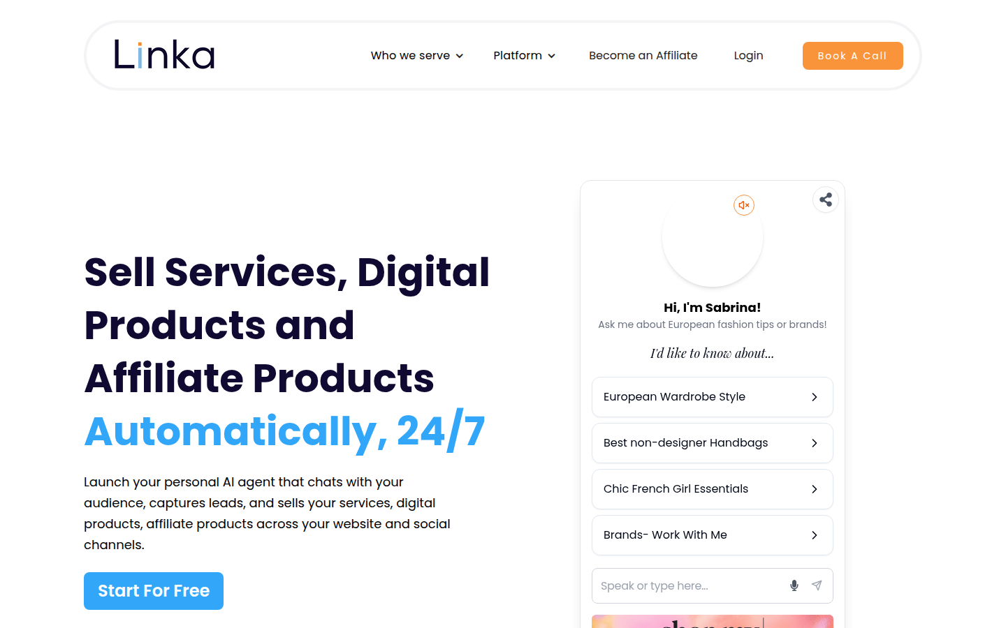 Linka AI is a conversational AI platform that enables businesses and professionals to create personalized AI sales agents trained on their own content. These AI agents can be deployed across websites, social media channels, and messaging platforms to engage visitors, answer questions, capture leads, and drive sales automatically. The platform supports multiple use cases including service sales, product recommendations, affiliate marketing, and direct conversions.