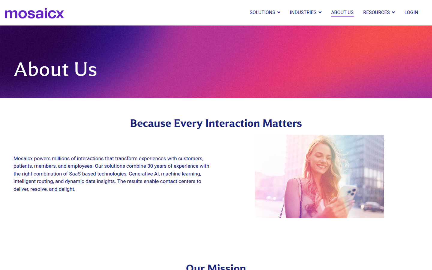 Mosaicx is a conversational AI platform provider that transforms enterprise customer service with an AI-native platform delivering adaptive, intelligent, and seamless interactions. The company offers omnichannel solutions that empower modern customer experiences through market-leading conversational AI technology.