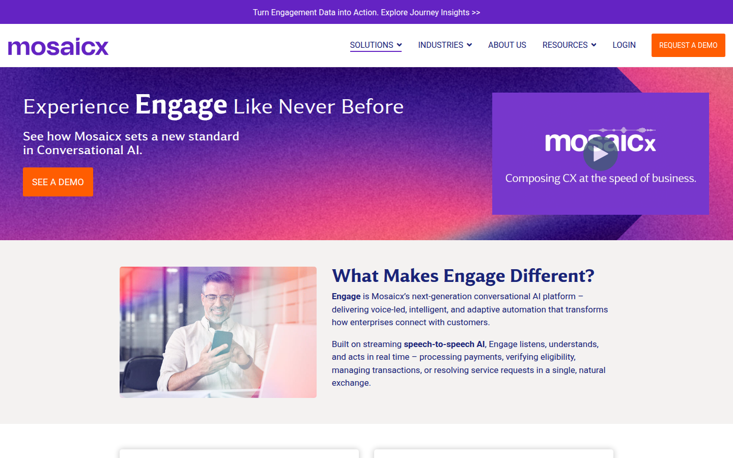 The Mosaicx platform includes three core products: Engage for automated inbound and outbound customer support with streaming speech-to-speech AI interactions, Outreach for bi-directional AI-powered messaging, and Insights360 for end-to-end analytics tracking interactions from dial to disconnect. Powered by LinguaAI technology, their solutions understand multilingual needs, detect tone, and act autonomously to optimize conversations by blending empathy with efficiency. The platform serves multiple industries including finance, healthcare, pharmacy, retail, telecommunications, and travel.