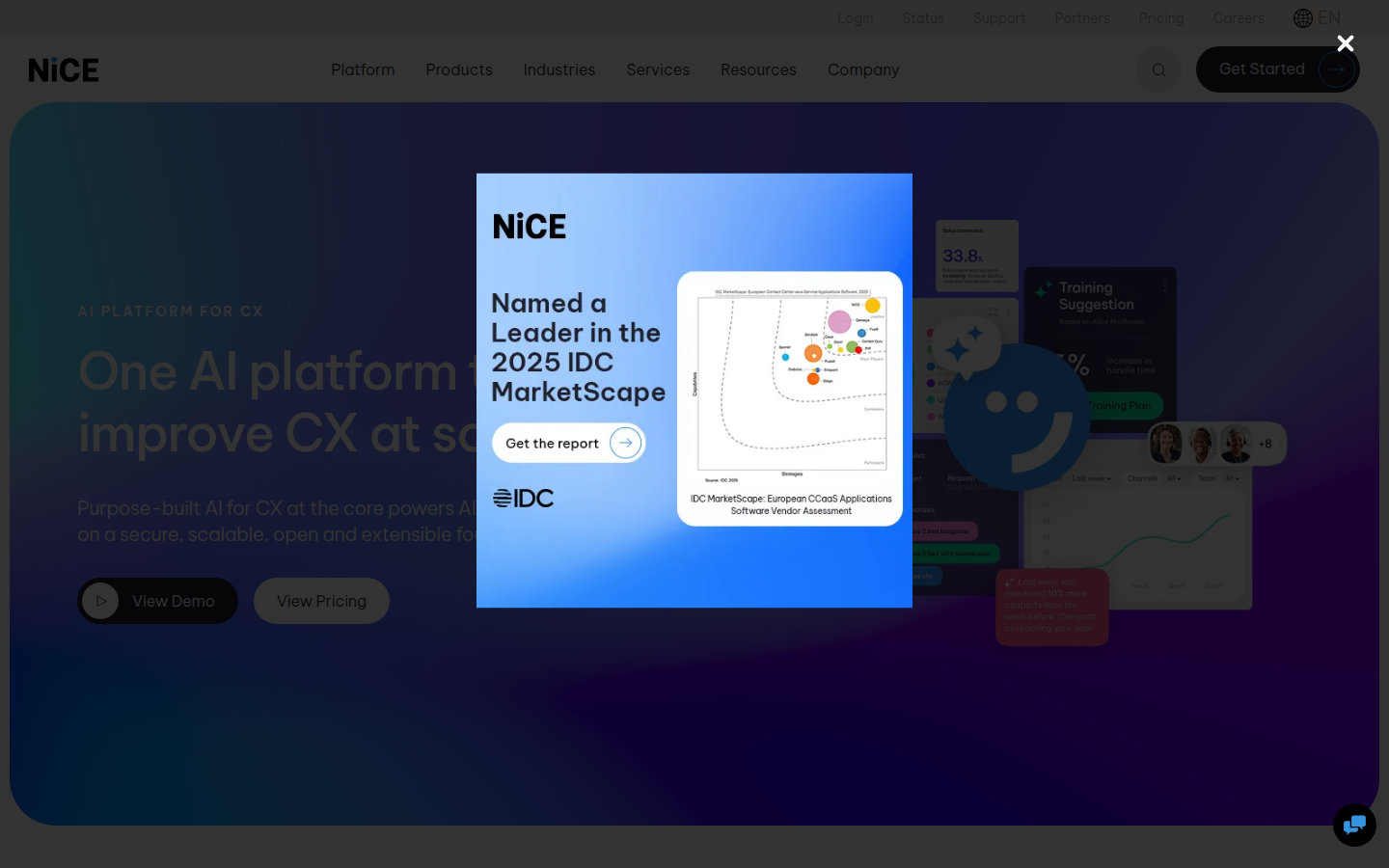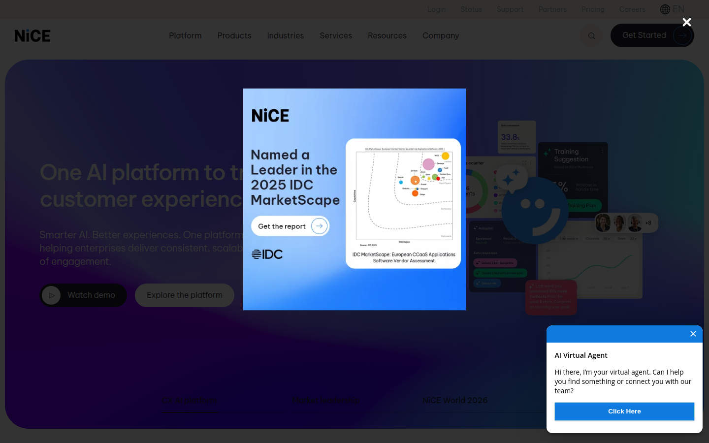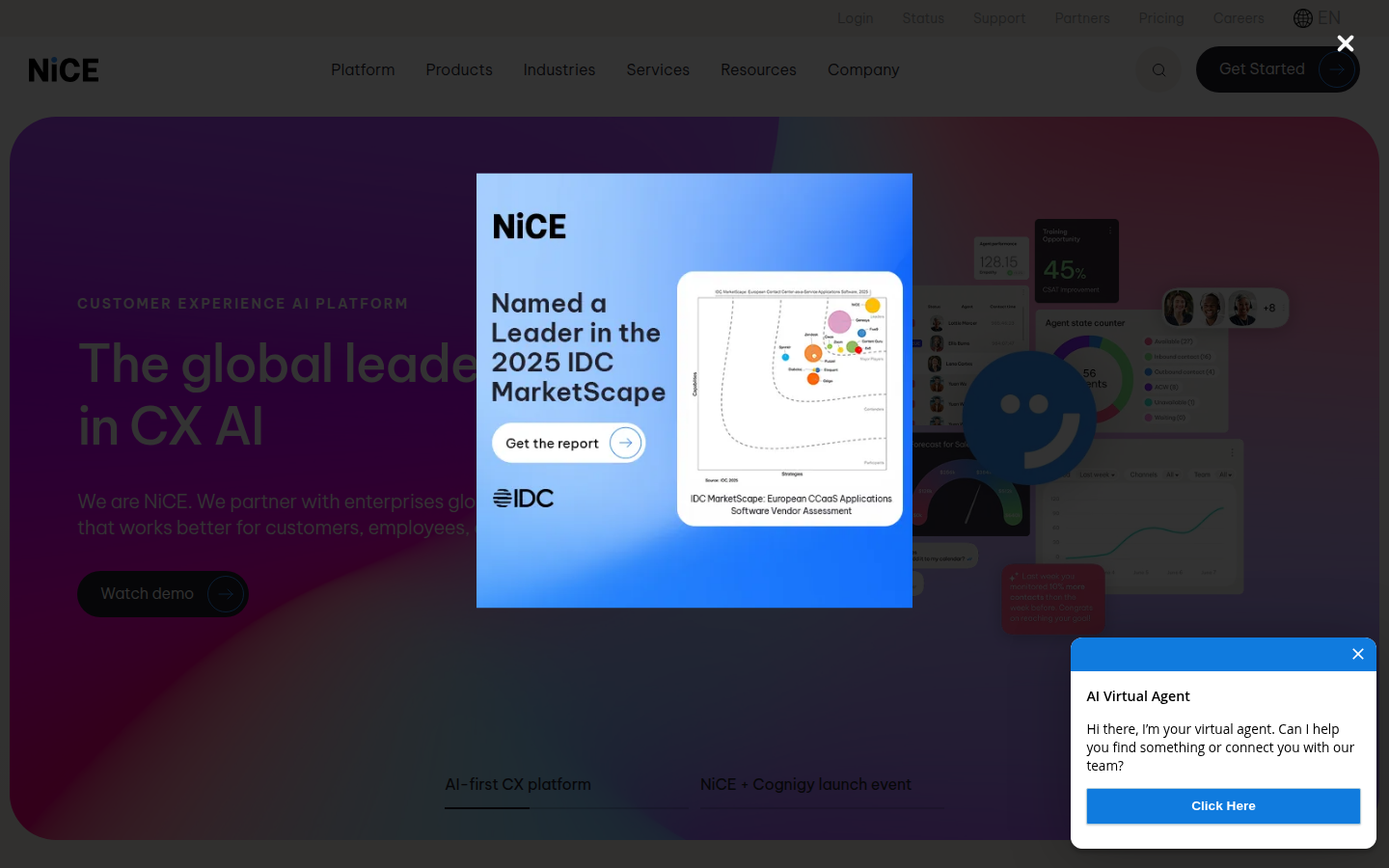 NICE is an enterprise AI platform provider that specializes in customer experience automation solutions. The company offers a comprehensive suite of AI-driven tools including AI agents, workflow orchestration, and human agent augmentation through their unified platform. NICE recently acquired Cognigy to enhance their conversational AI capabilities and expand their data-driven CX AI platform.