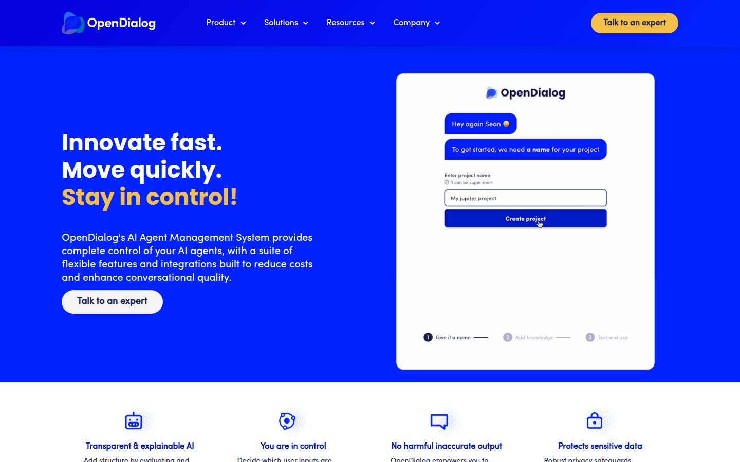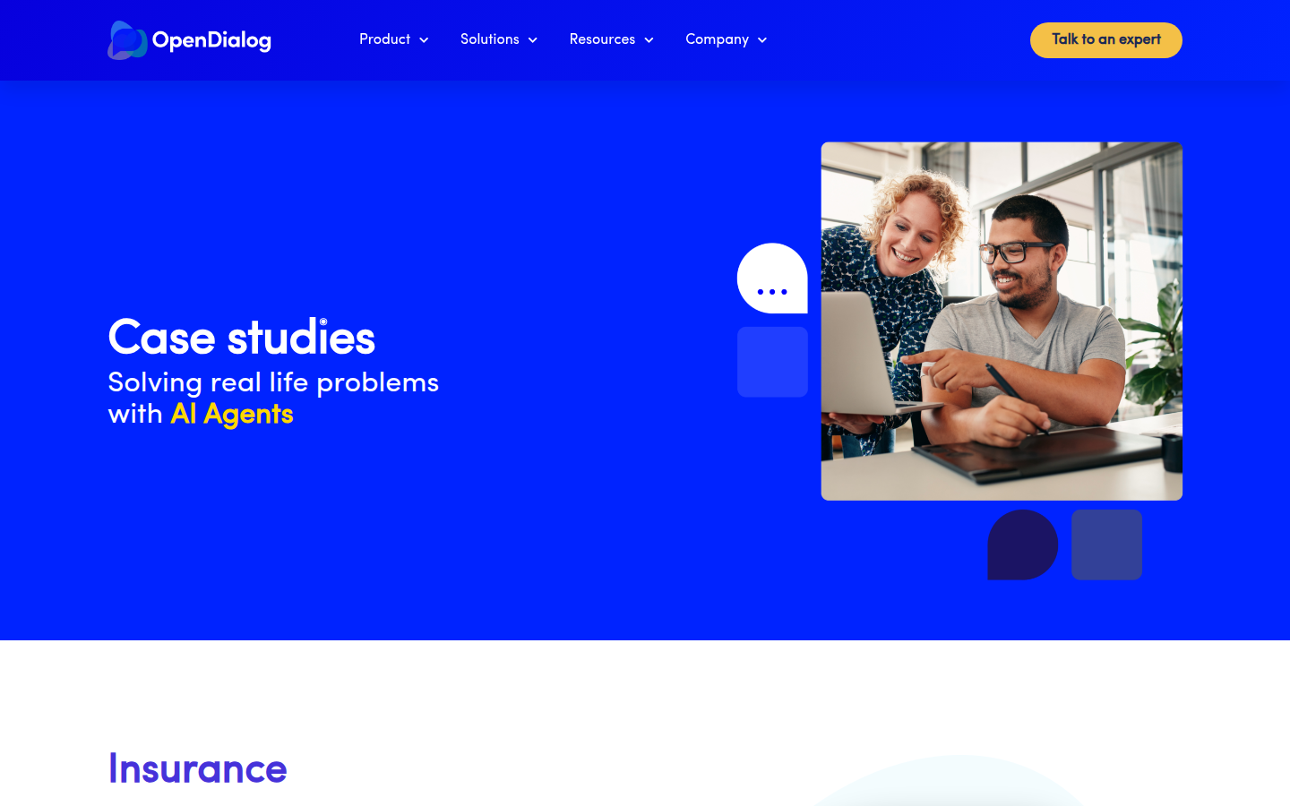 OpenDialog offers multiple specialized AI agents including Jamie for handling complex policy queries across multiple channels, and Rhea for re-engaging abandoned leads with personalized incentives. The platform focuses on compliance and safety for regulated businesses, delivering intelligent upselling that grows average policy size by nearly 12% while reducing reliance on live agents and providing almost instant return on investment.