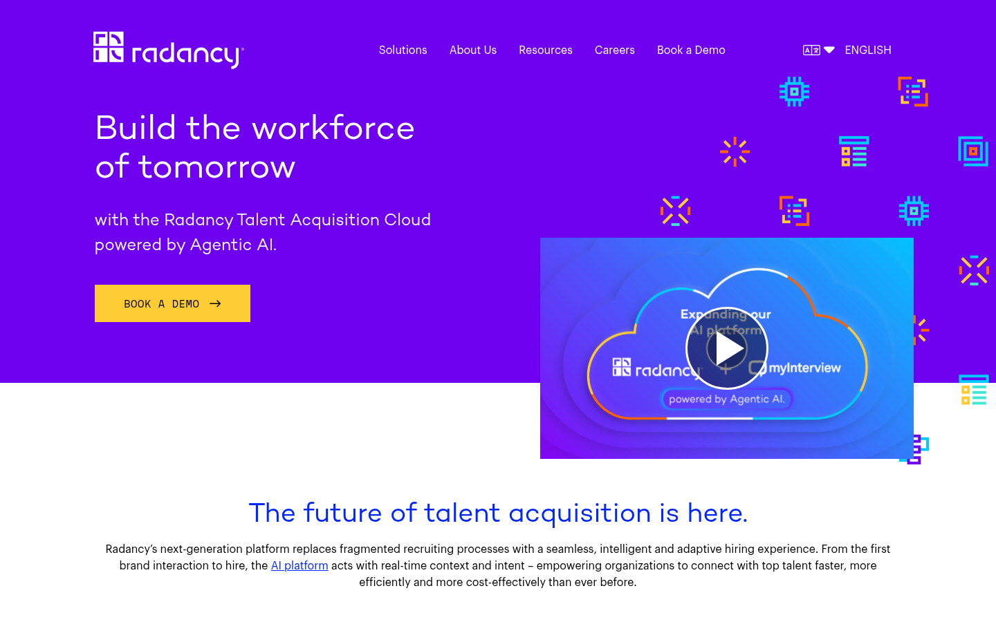 Radancy is a talent acquisition technology company that provides an AI-powered platform designed to transform how organizations hire talent. The company offers an end-to-end talent acquisition solution that helps businesses attract, source, engage, capture, evaluate, and advance candidates throughout the hiring process.