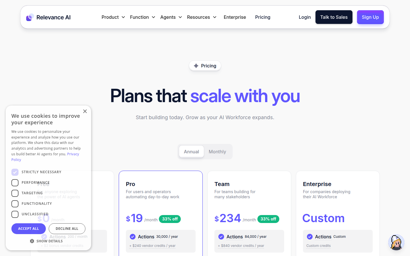 Relevance AI is a platform that enables businesses to build and manage AI workforces through visual, no-code tools. The company offers specialized AI agents including AI BDR agents for sales automation and AI research agents for prospect intelligence, as well as custom agent creation capabilities. Their platform is designed for operations teams and subject-matter experts who need to deploy AI agents without technical expertise. Relevance AI serves enterprise customers including Canva, Autodesk, KPMG, and Lightspeed, providing multi-agent systems that integrate with existing tech stacks and deliver business-critical automation across sales, marketing, support, and operations functions.