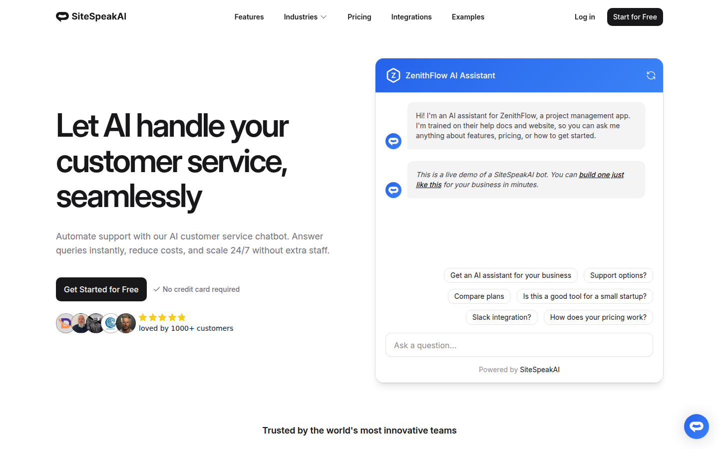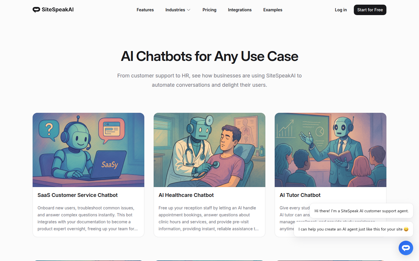 SiteSpeakAI provides an AI-powered customer service platform that enables businesses to automate their support operations. Their solution connects to various content sources like websites, help docs, and PDFs to create a knowledgeable AI agent that can instantly answer customer queries. The platform offers features such as lead capture, appointment booking, human escalation, and detailed analytics.