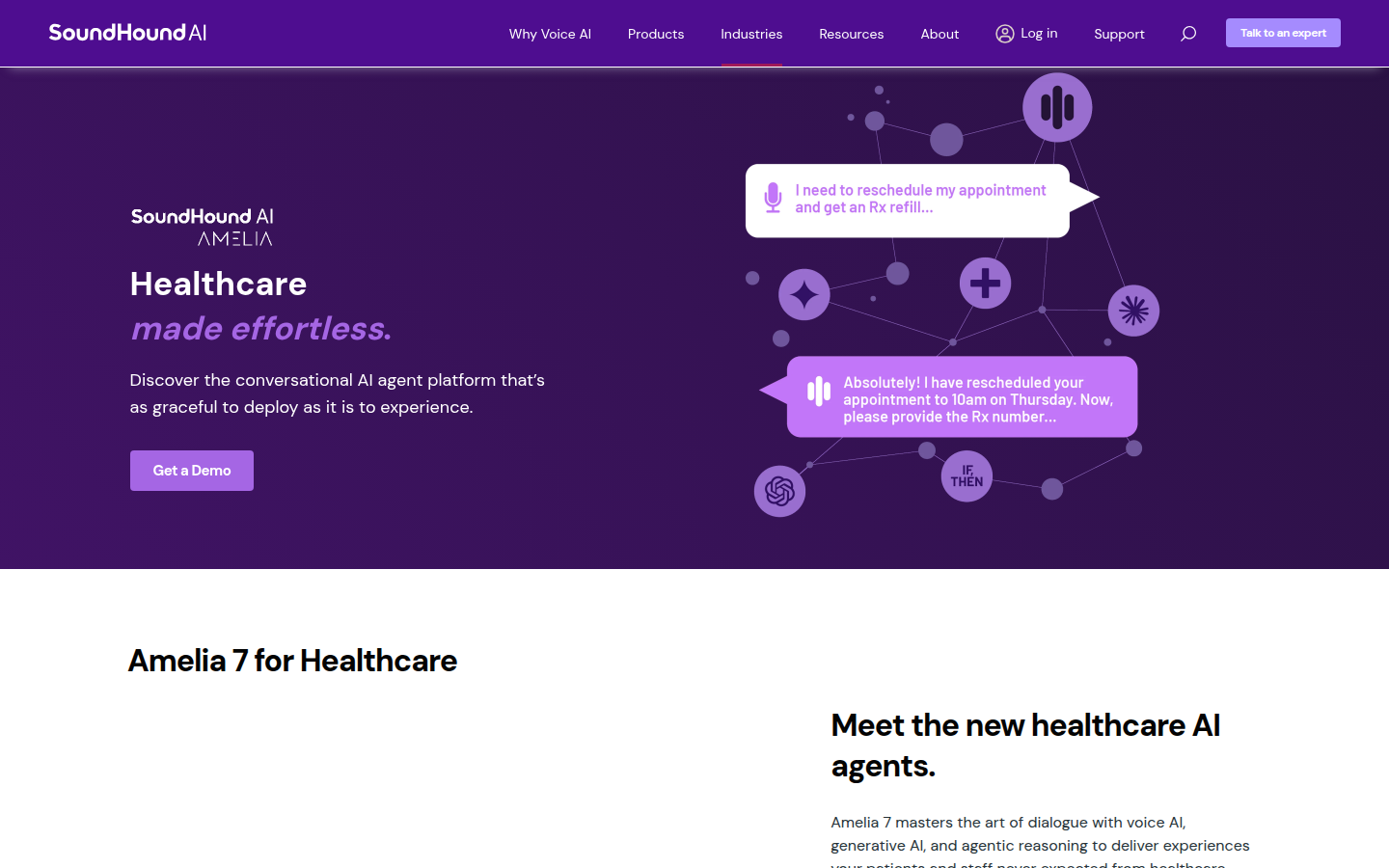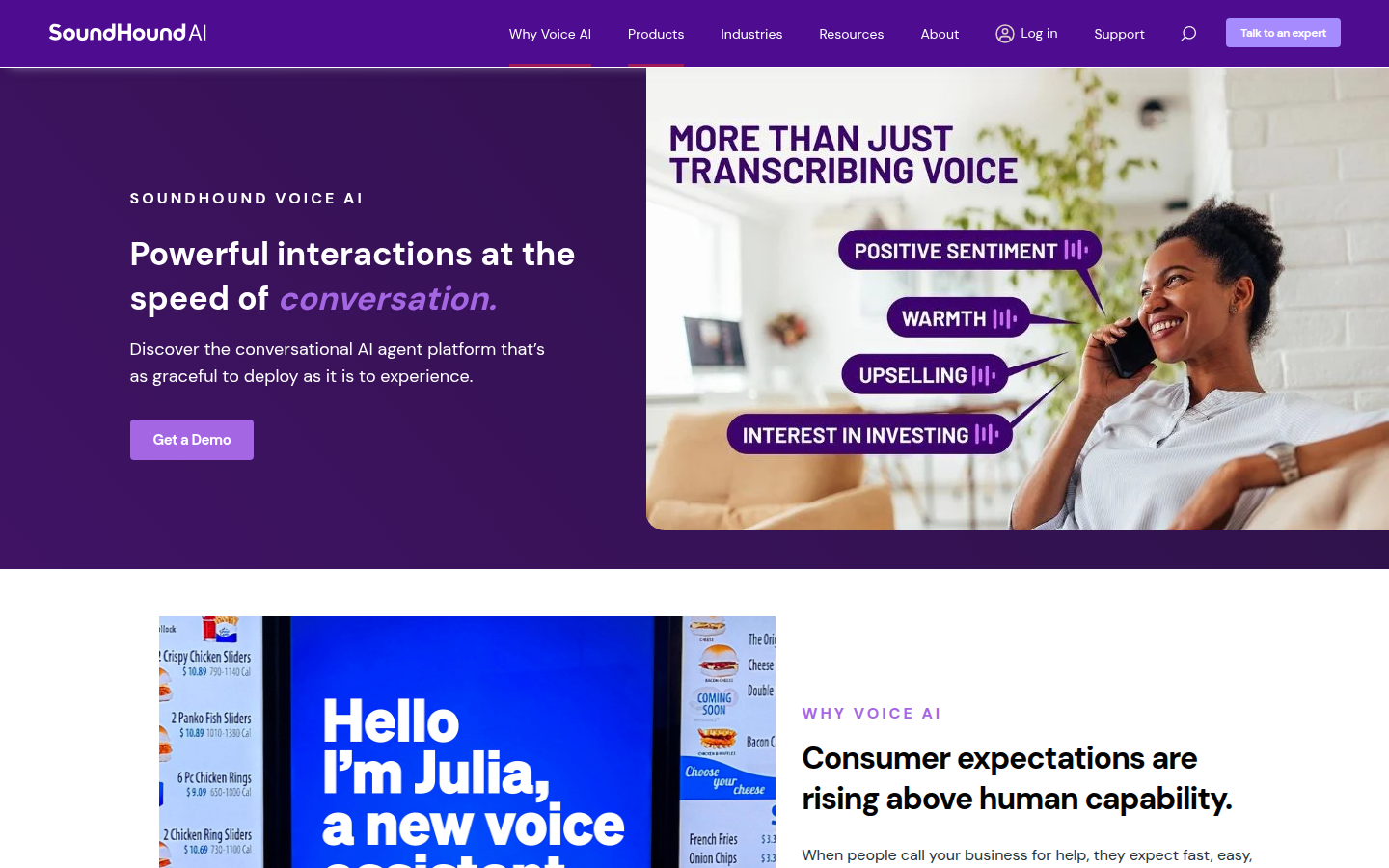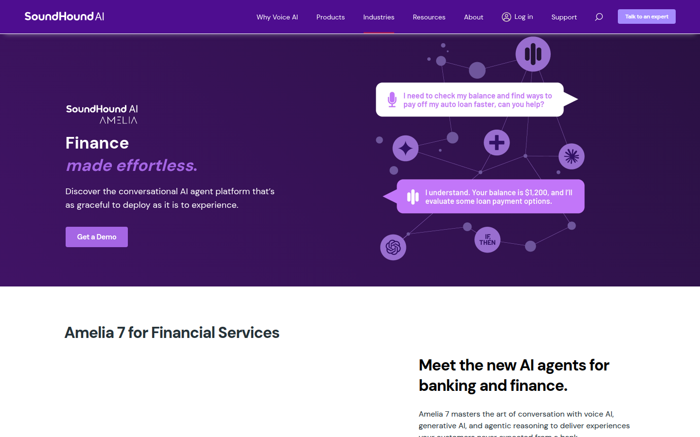 SoundHound AI's platform delivers AI agents for customer service, sales and marketing, operations, and IT service management. The company serves diverse industries including healthcare, finance, restaurants, automotive, utilities, hospitality, retail, insurance, telecom, and more. Their solutions help businesses cut operating costs, boost revenue, and build customer loyalty through intelligent automation of routine interactions while allowing human staff to focus on complex, high-value tasks.
