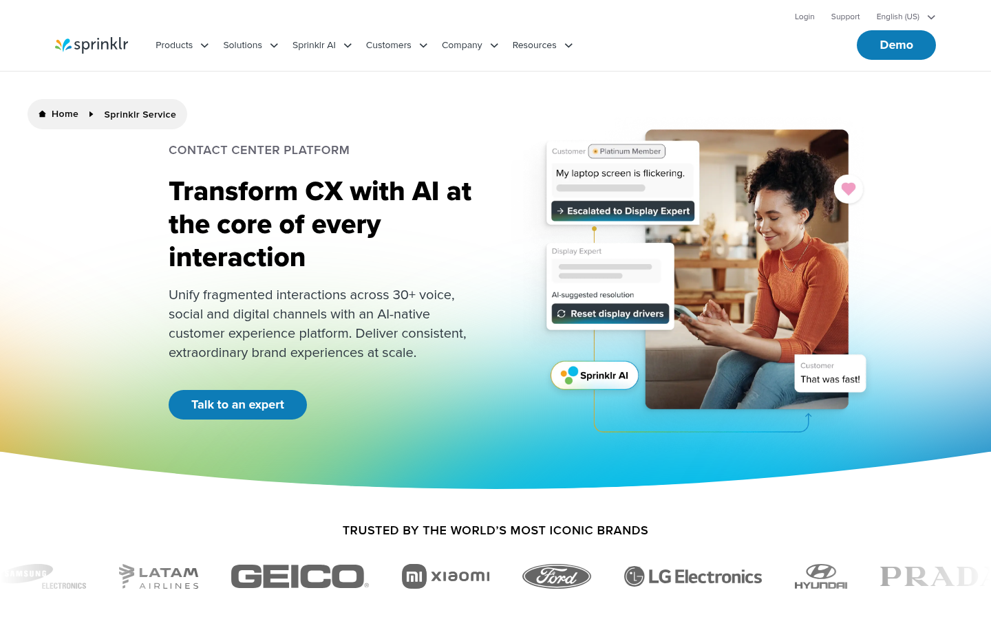 The platform leverages over a decade of AI innovation, infusing specialized AI capabilities including AI Agents, Copilot assistance, and intelligent workflows throughout every customer interaction. Sprinklr serves enterprise clients globally, helping them transform disconnected customer touchpoints into cohesive, personalized experiences that drive loyalty and business results.