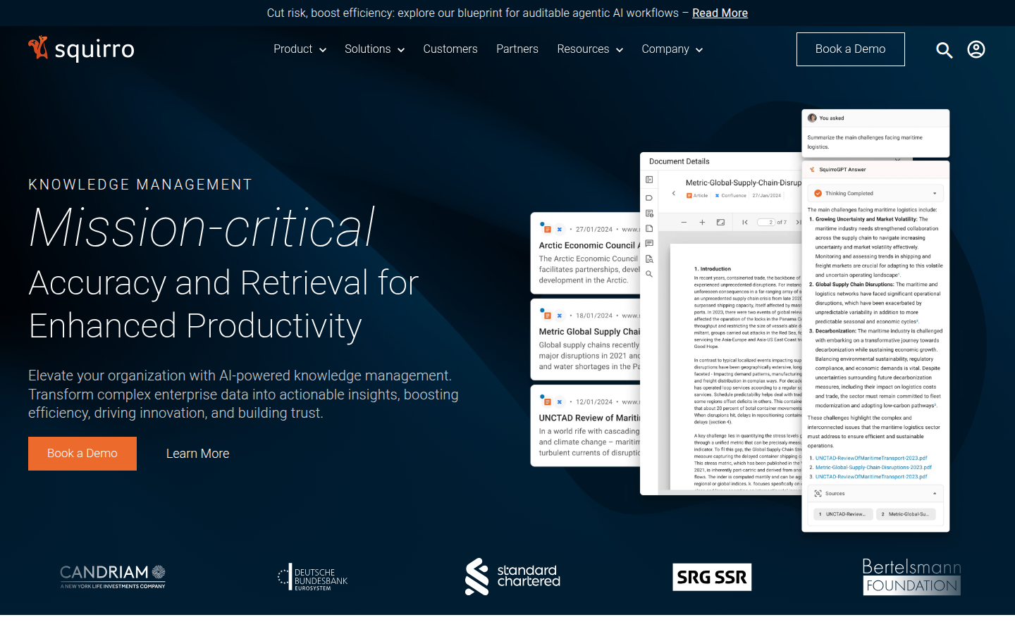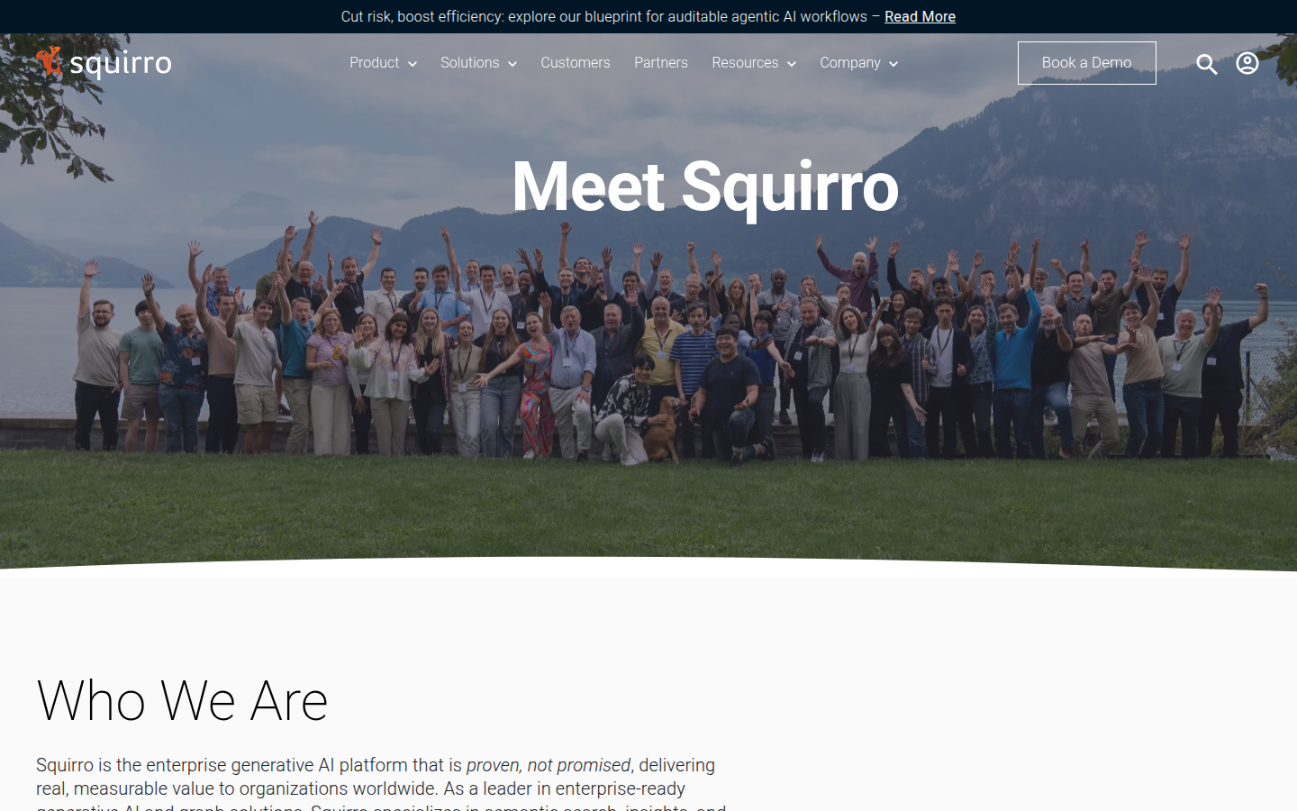 The platform provides flexible deployment options including private cloud, on-premises, and hybrid configurations to meet strict compliance requirements. Squirro has demonstrated proven impact with clients achieving significant cost savings and operational efficiencies, including EUR 7.2 million in annual savings through workflow automation and 95% time savings in various processes. The company is recognized as a leader by Gartner in GenAI Engineering and AI Knowledge Management, serving major organizations including the European Central Bank, OCBC Bank, and Standard Chartered.
