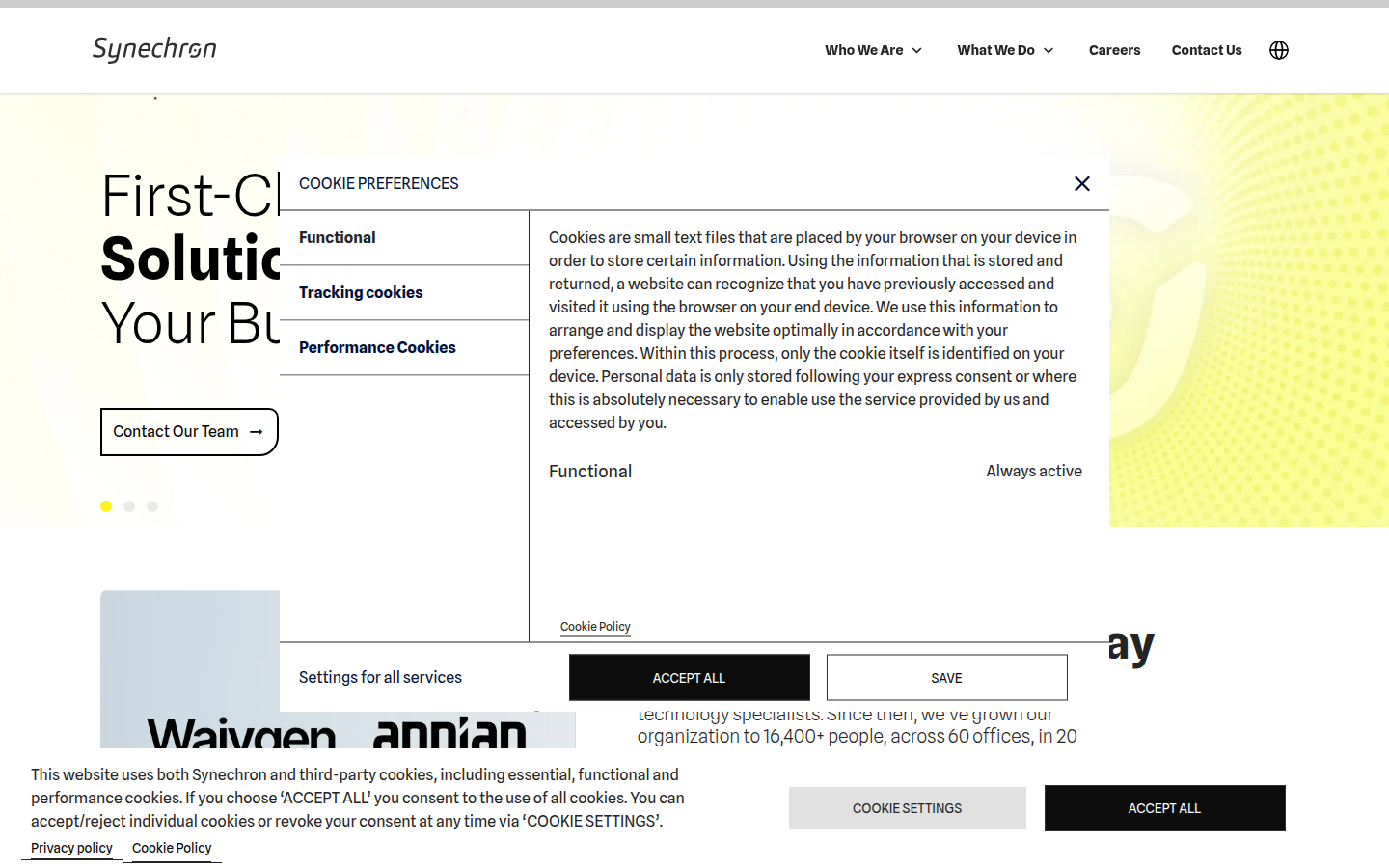 Synechron is a global technology and AI consulting company that delivers tailored, end-to-end artificial intelligence, consulting, data, digital, cloud and software engineering solutions. The company operates at the intersection of human and AI creativity, providing AI-backed solutions that streamline services and deliver insights and efficiencies to businesses at scale.