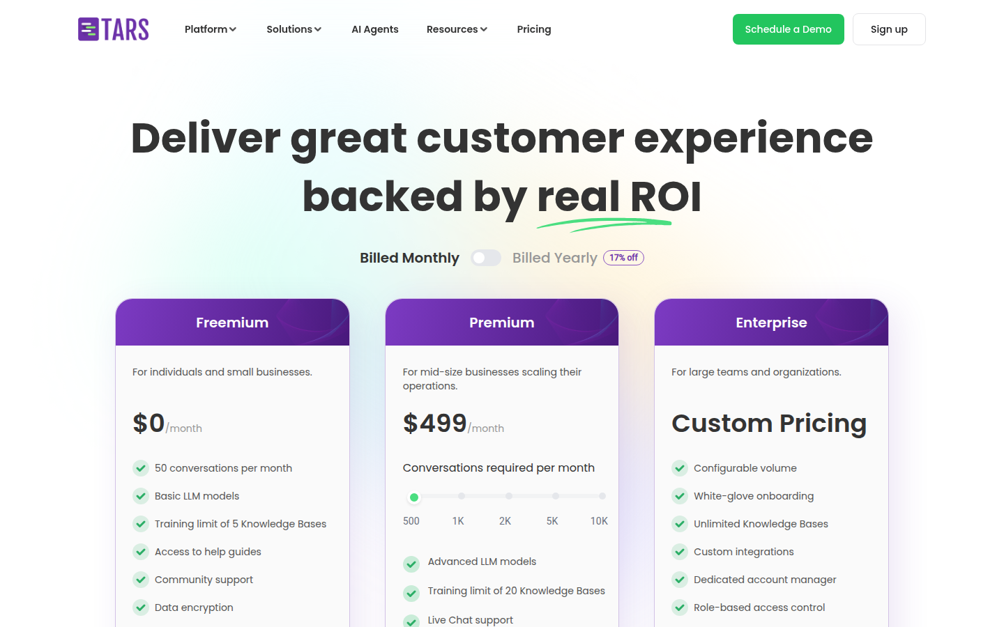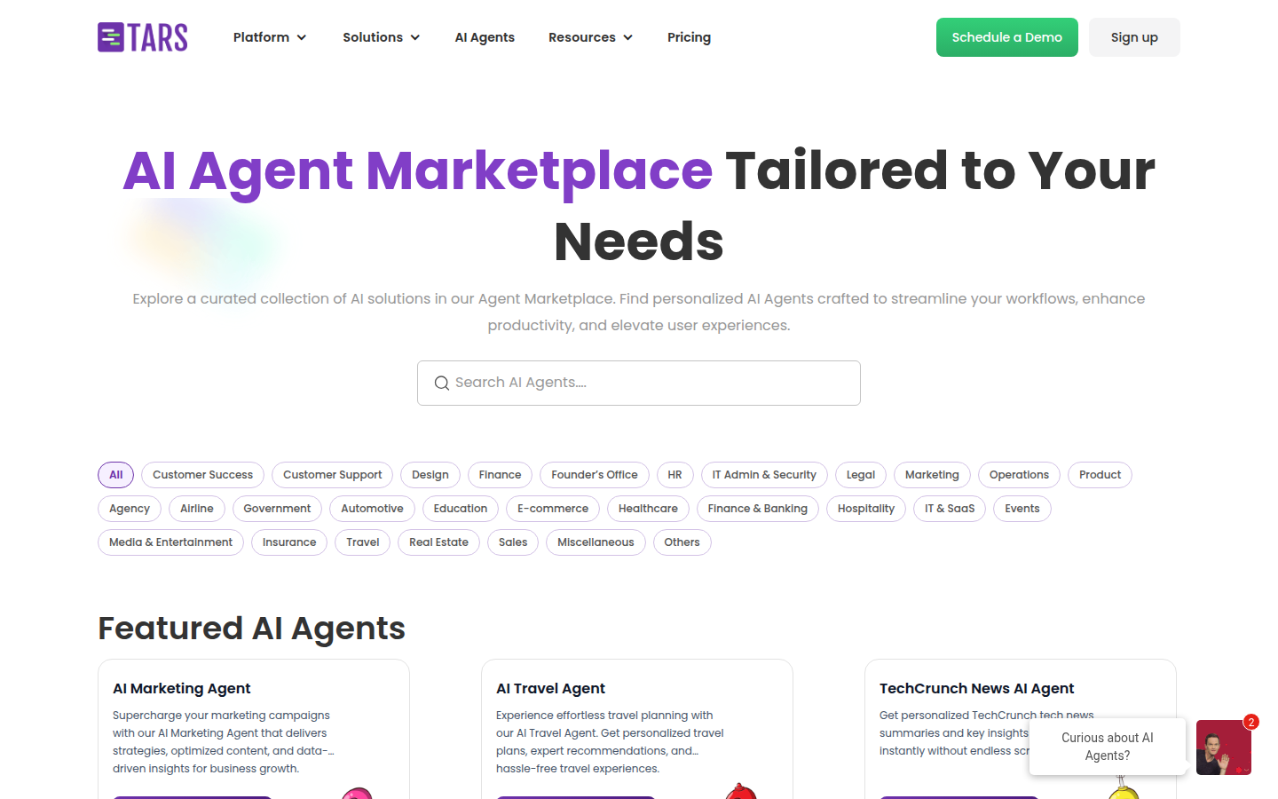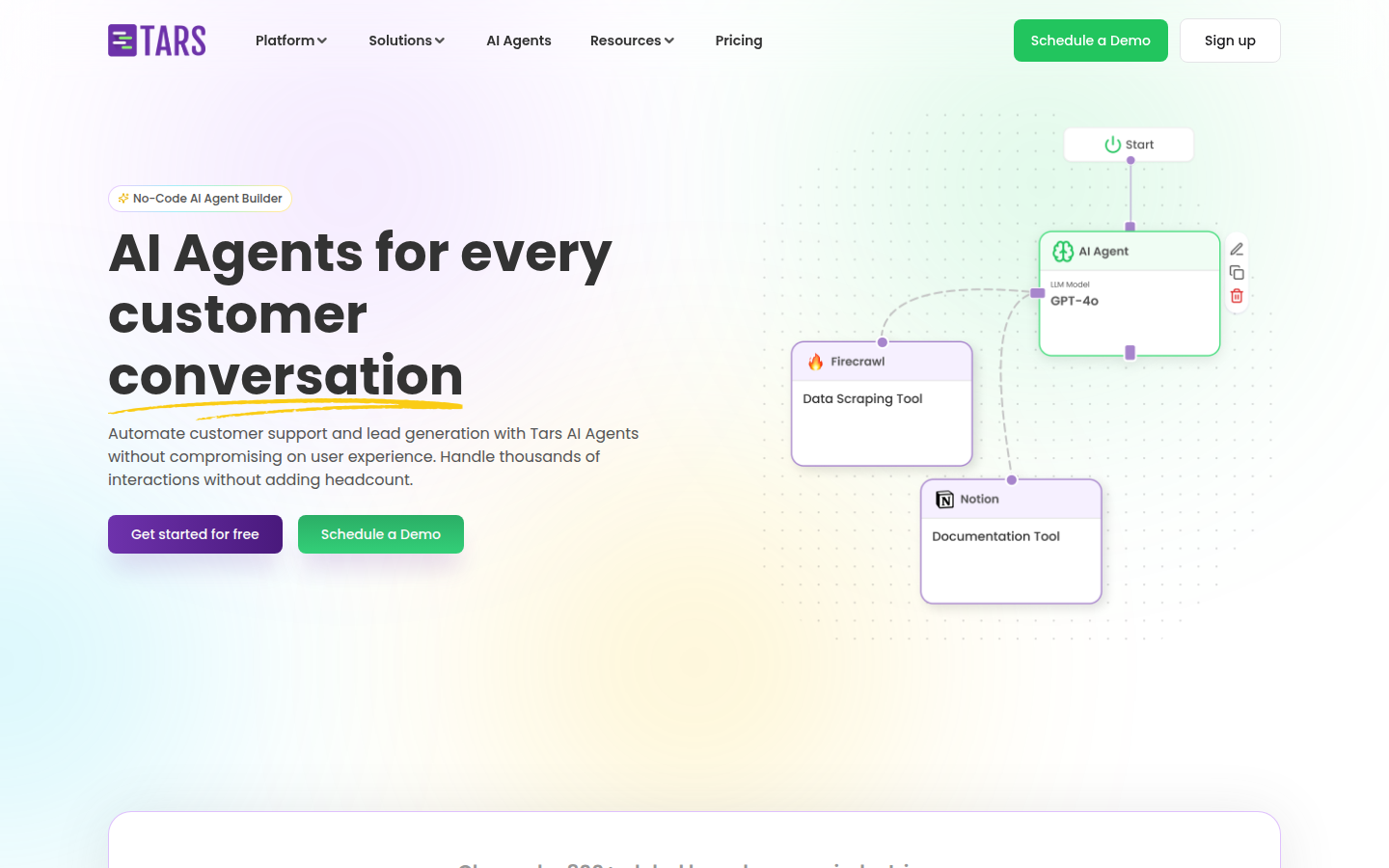 Tars is a Conversational AI platform that enables businesses to build intelligent AI agents without coding. Their platform allows companies to create custom AI agents for customer support, lead generation, and service automation across multiple industries.