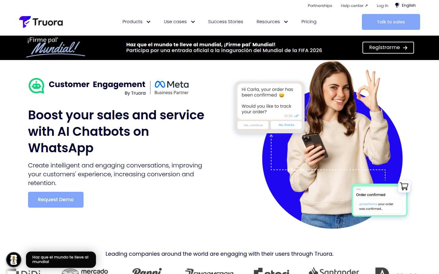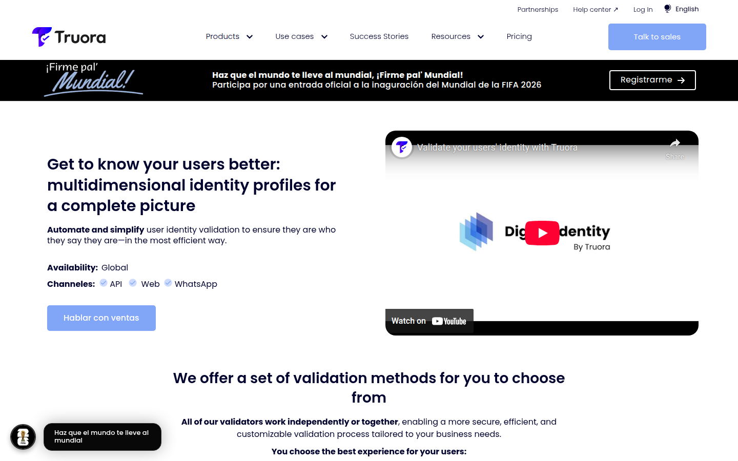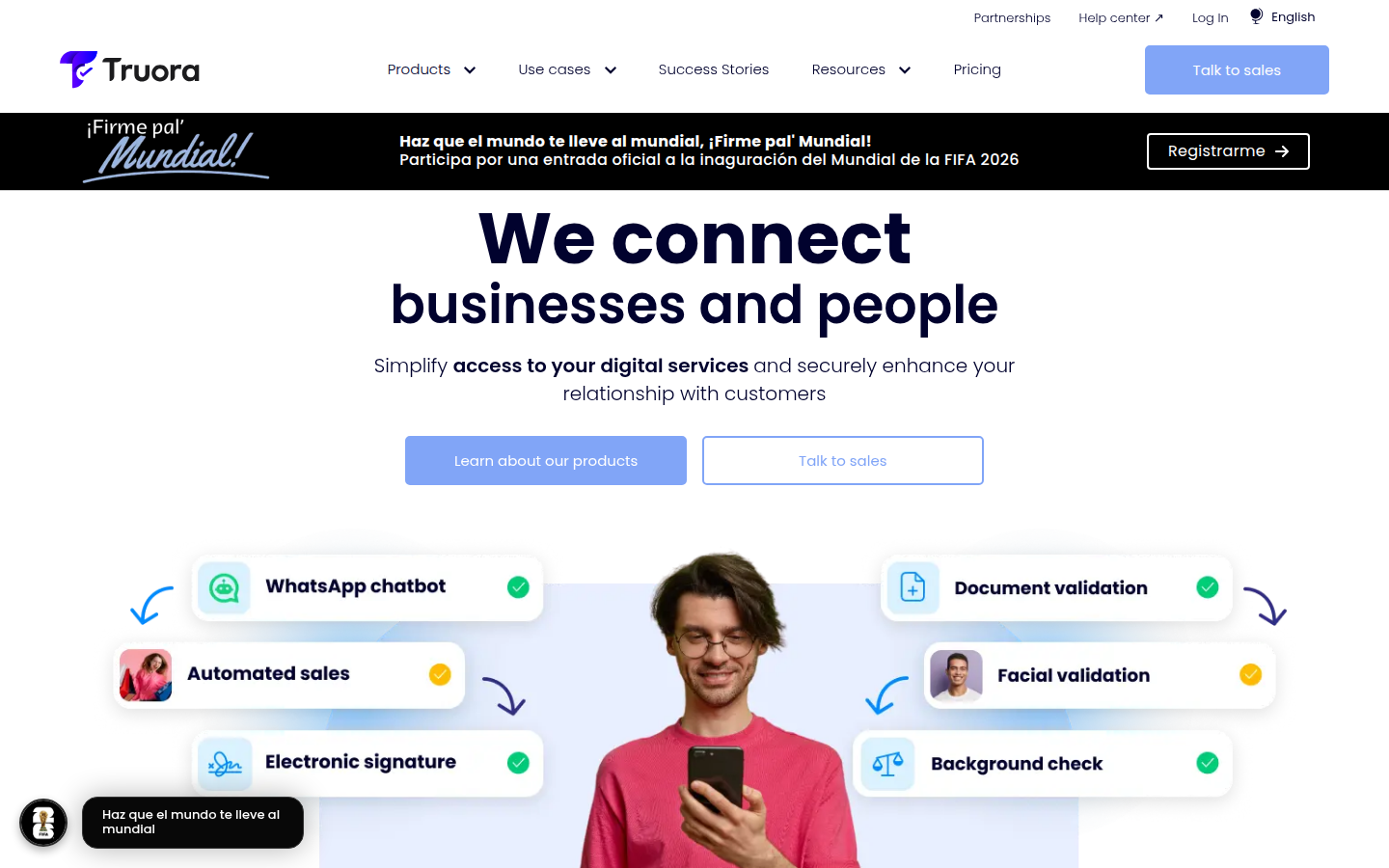 Truora is a technology platform that provides digital solutions to help businesses grow, improve conversion rates, and enhance customer relationships. The company offers three main product categories: Digital Identity Verification (including document validation, facial recognition, and email/phone validation), TruChecks background verification services, and Customer Engagement tools featuring AI-powered WhatsApp chatbots.