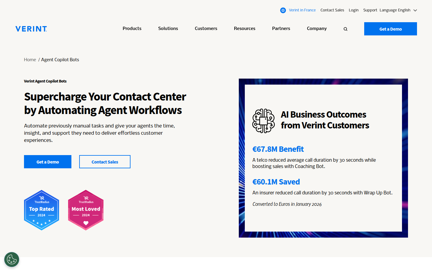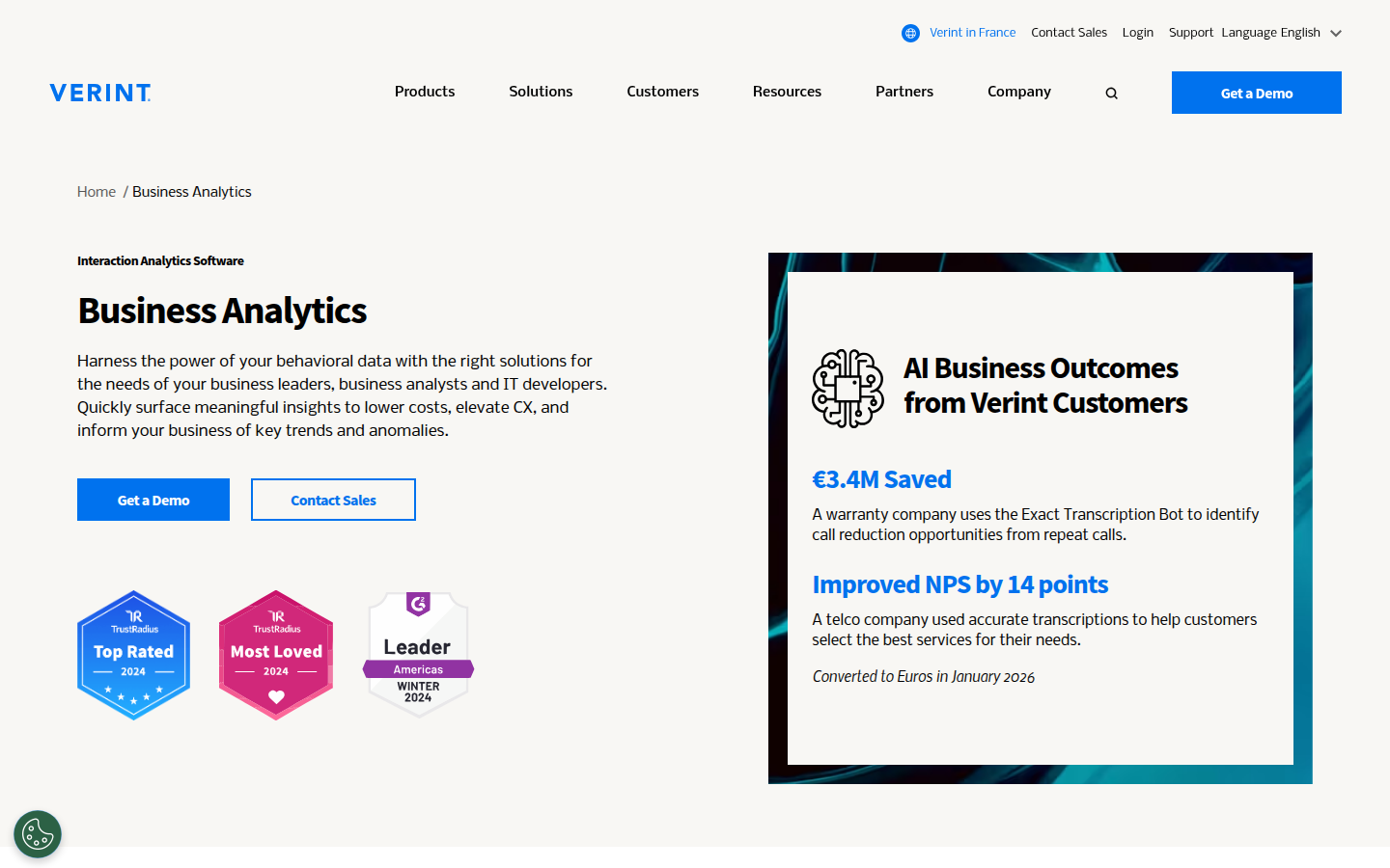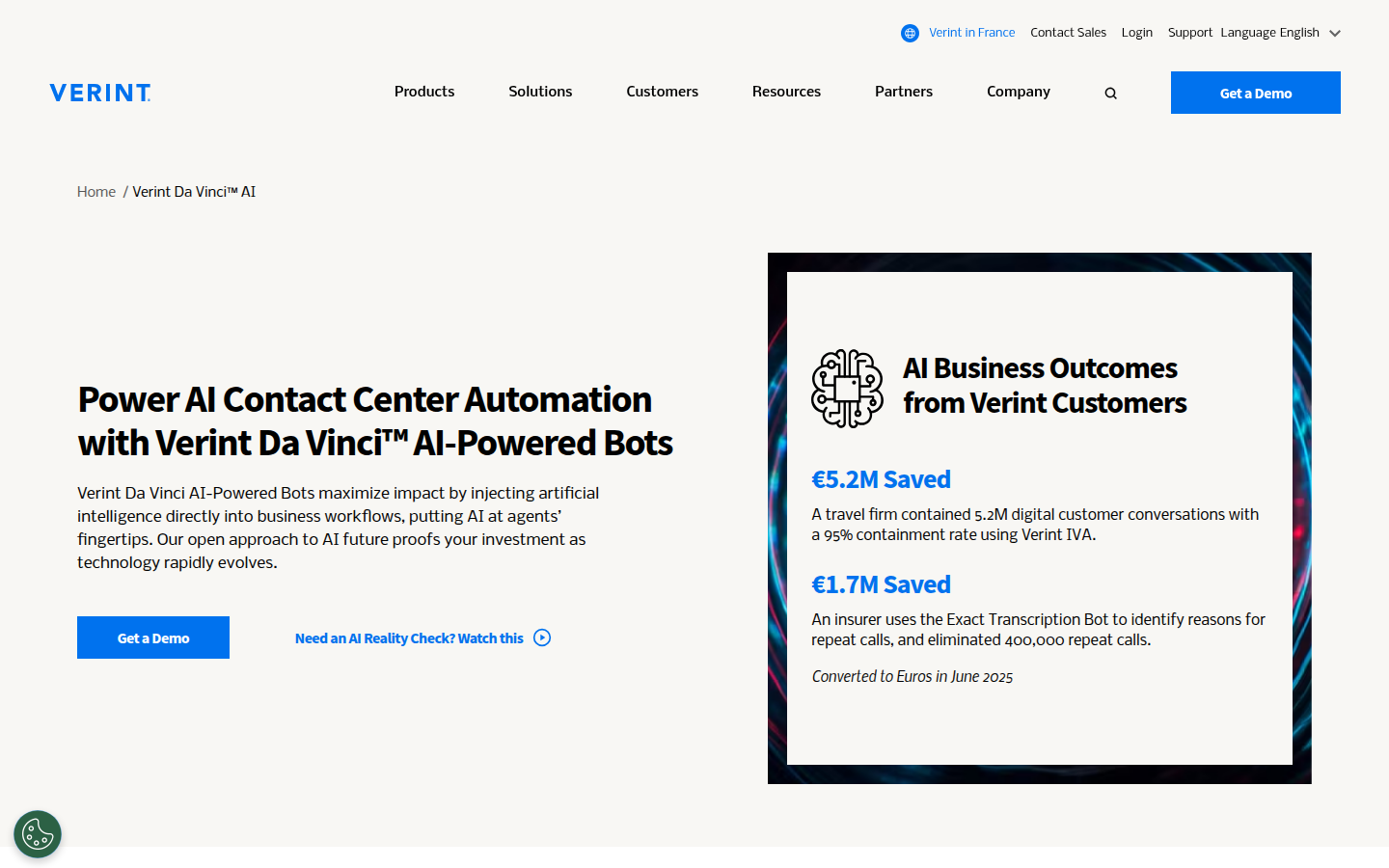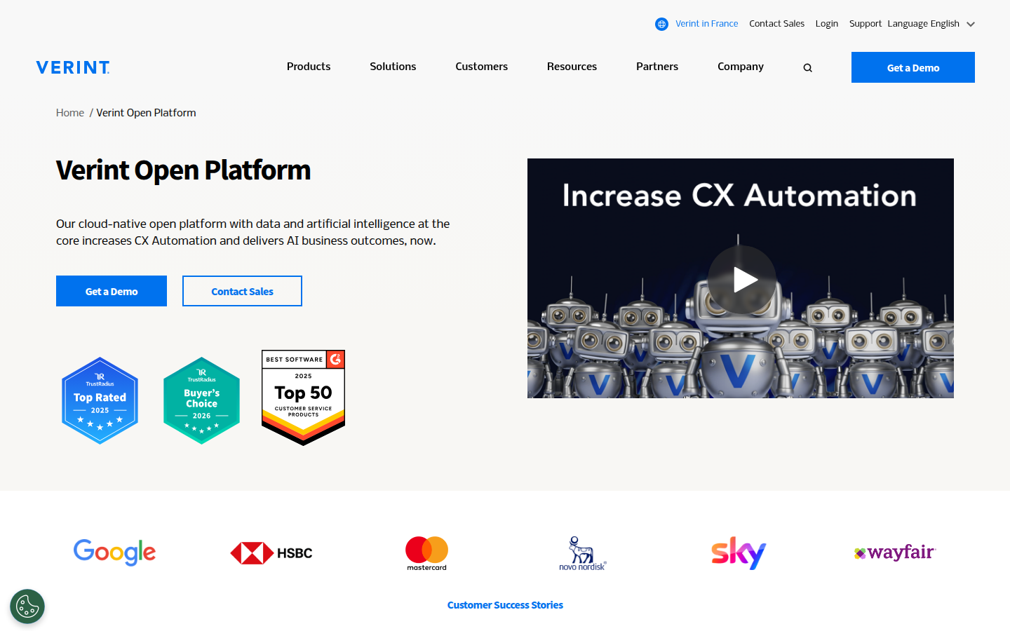 Verint provides a cloud-native open platform that helps organizations transform customer experience through AI-powered automation and analytics. Their solutions span customer self-service, agent assistance, workforce engagement, and business intelligence, enabling companies to lower costs and elevate customer interactions. The Verint platform leverages advanced AI technologies like intelligent virtual assistants, speech analytics, and real-time coaching to help businesses improve operational efficiency and customer satisfaction.