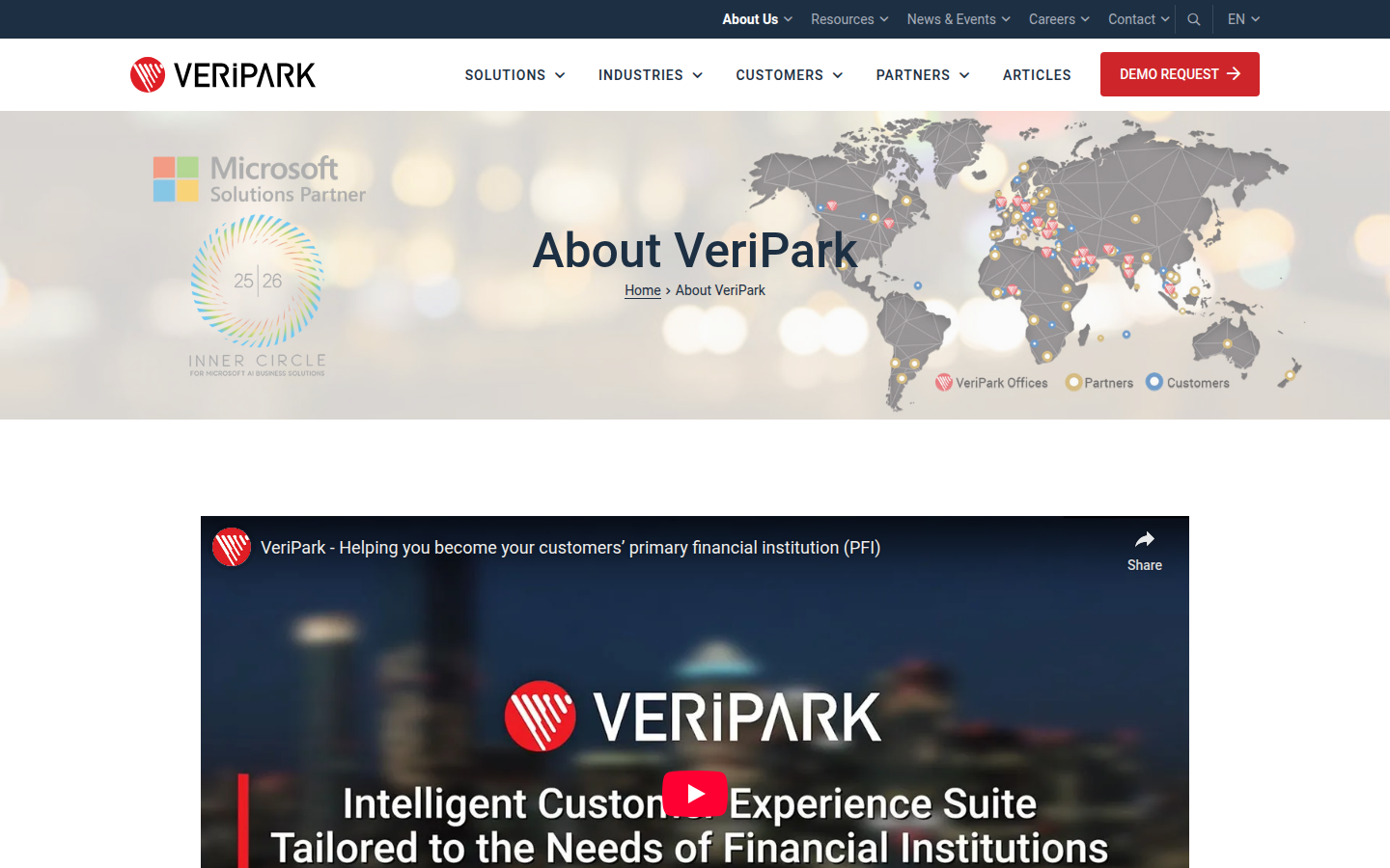 The company focuses on helping financial institutions become AI-first digital leaders by providing tools that reduce cost-to-serve while increasing sales, customer satisfaction, and profits. VeriPark has been recognized by industry analysts including Gartner and IDC, and maintains strategic partnerships with Microsoft.