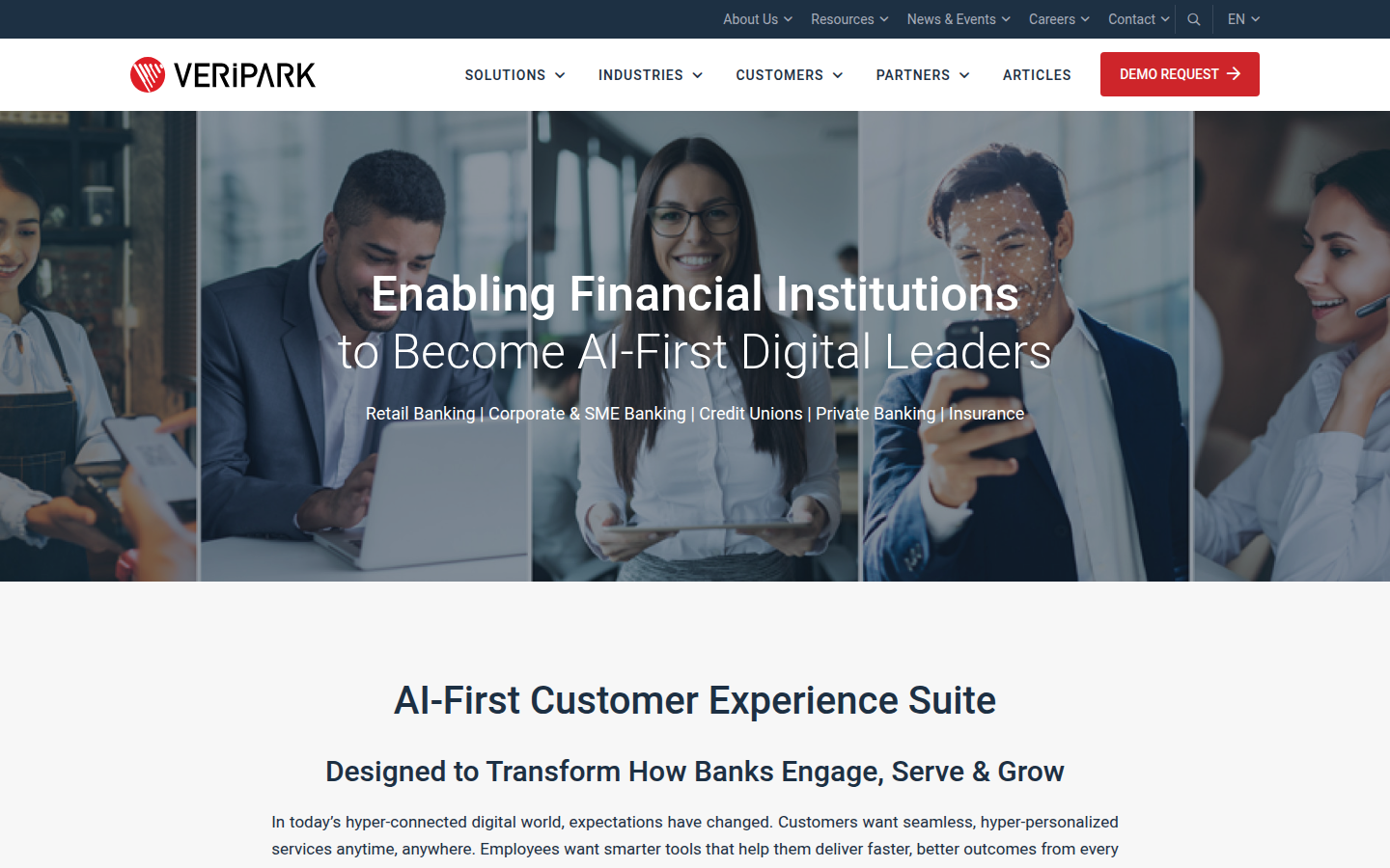 VeriPark is a financial technology company that provides an AI-First Customer Experience Suite specifically designed for financial services institutions. The company helps banks, credit unions, and insurance companies transform their digital customer engagement through omni-channel delivery, intelligent servicing, and personalized experiences.