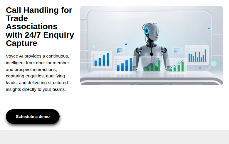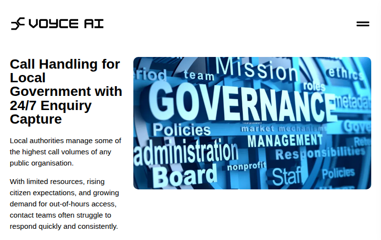 Voyce AI is an AI-powered call handling platform that answers inbound calls 24/7, captures customer information, books appointments, processes payments, and escalates complex inquiries to human agents when needed. The solution enables organizations to resolve calls faster, reduce escalations, and improve customer satisfaction without expanding headcount.