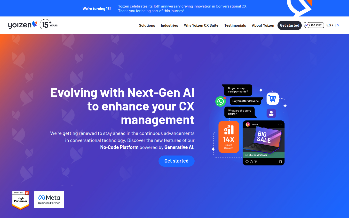 Yoizen is a digital technology company founded in 2010 that specializes in conversational customer experience platforms. The company provides an AI-powered, no-code platform that enables businesses to create chatbots and manage multi-channel customer interactions through WhatsApp, Facebook, Instagram, and other digital channels. Their solution integrates conversational AI and generative AI for customer service automation, sales support, and business process optimization.