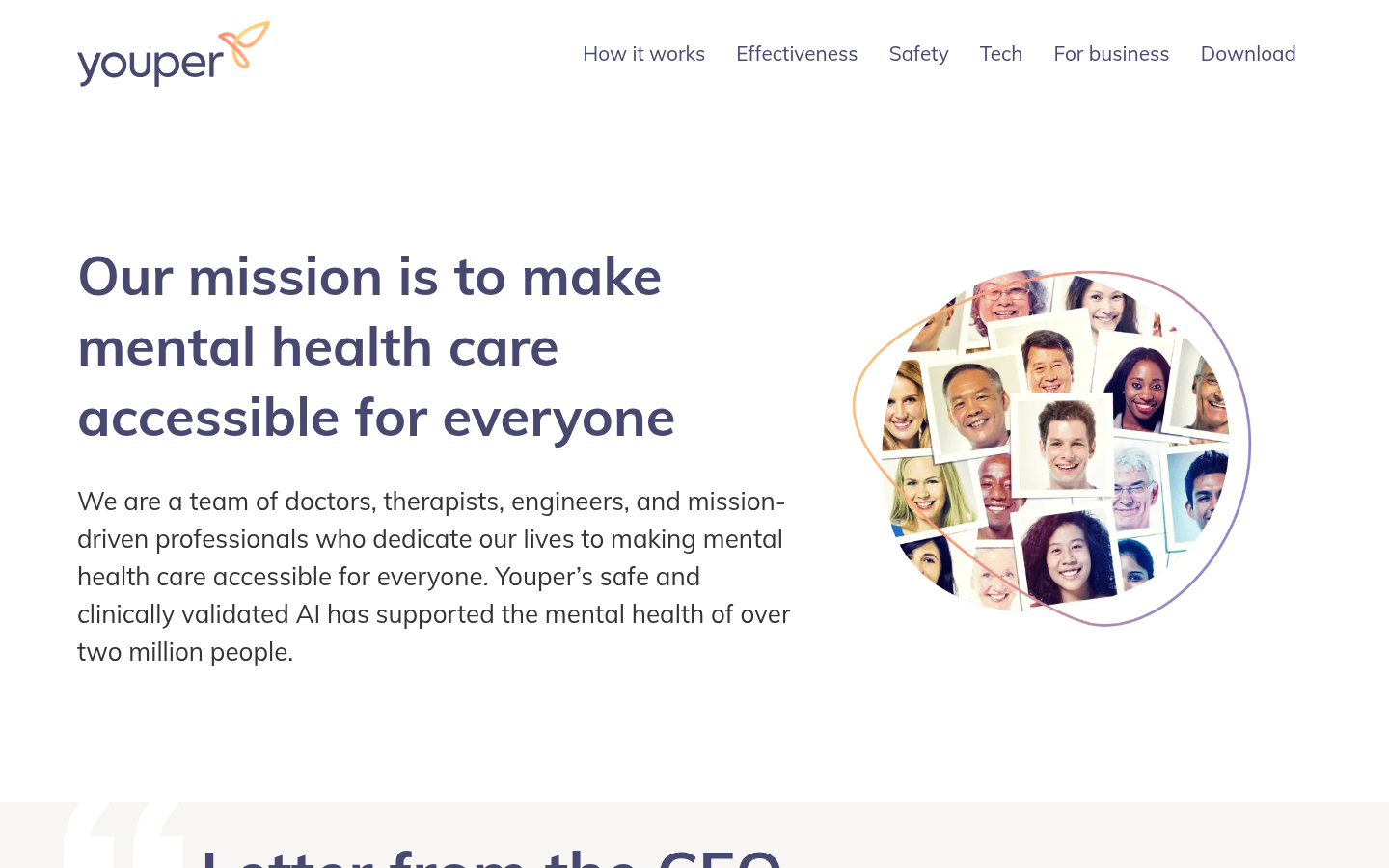 Youper is an artificial intelligence platform designed to address the mental health crisis by providing accessible emotional health support. The company has developed a conversational AI chatbot that serves as an emotional health assistant, trusted by over 3 million users worldwide. The platform combines psychology and artificial intelligence to understand users' emotional needs and engage in natural conversations using evidence-based interventions.